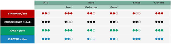 - Die Standard-Linie; bietet hohe Leistung für alle Arten von Fahrern.