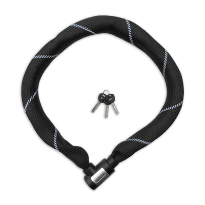 With this 100 cm long ART 2 chain lock from LYNX, every bike is maximally secured against theft. The lock has a fixed head, making it easy to use. The neatly finished lock head has a sliding cover to keep out dirt and moisture. Thanks to the ART 2 quality mark, this lock makes it possible to take out theft insurance for the bicycle. The 9 mm thick chain is encased in a soft nylon cover to prevent paint damage to the bicycle. Two keys are included. With slide card.
