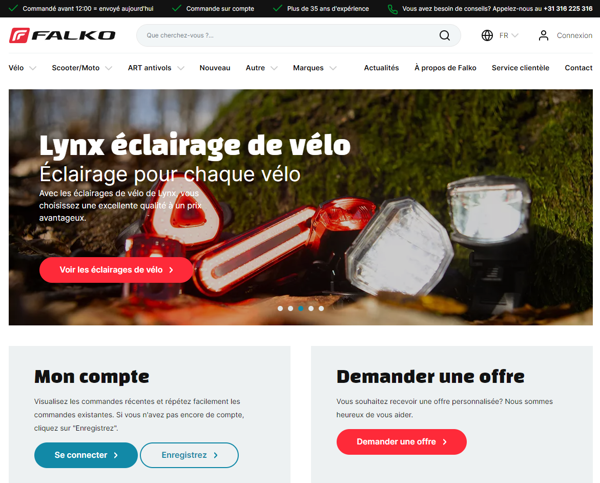 Bonne nouvelle, nous sommes en ligne avec notre nouvelle site web falko.nl. À partir de maintenant, c'est ici que vous pourrez passer vos commandes.
