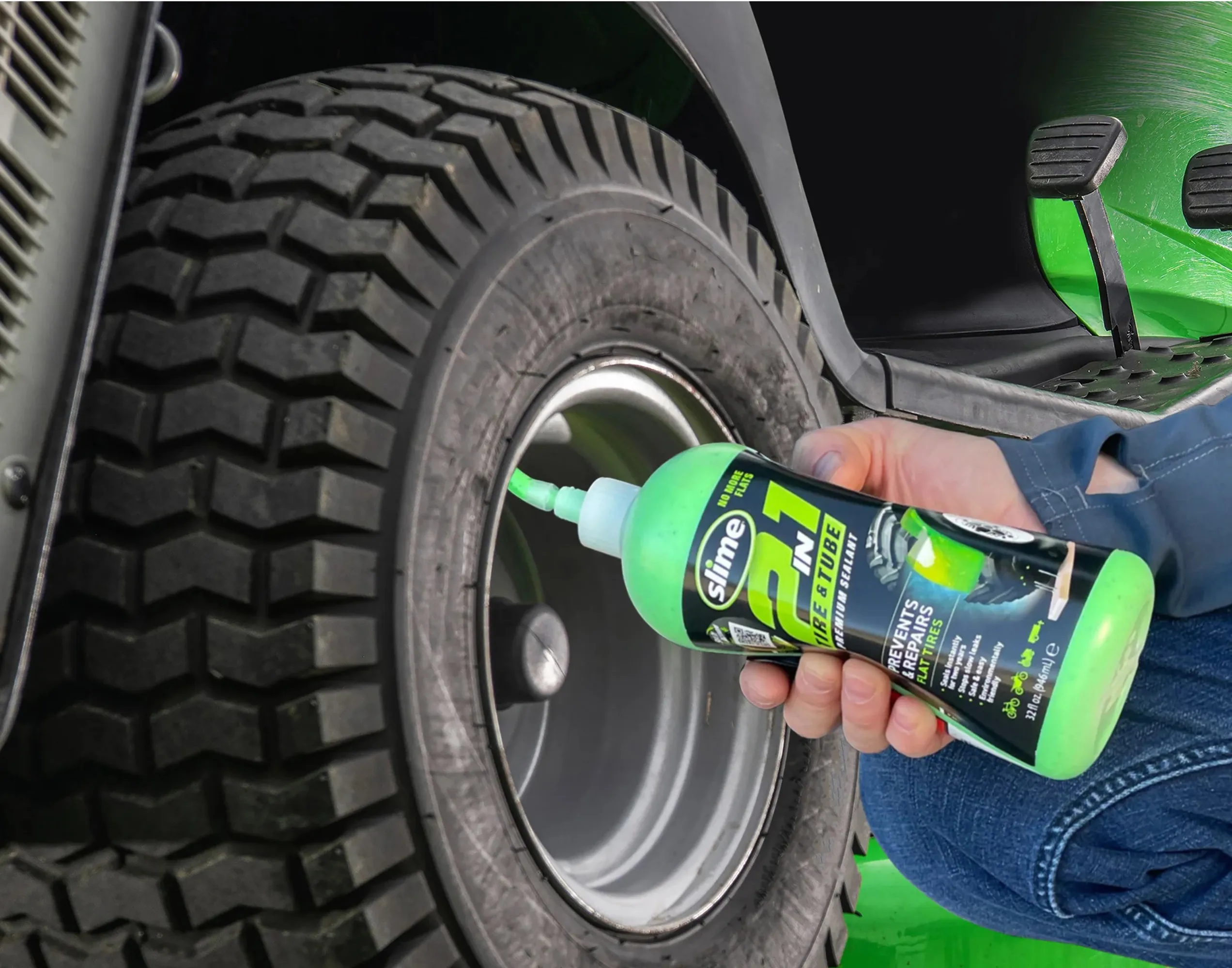 Le produit d'étanchéité 2 en 1 pour pneus et chambres à air de Slime prévient et répare les crevaisons. Ce produit de première qualité convient aux véhicules non routiers équipés de chambres à air ou de pneus sans chambre à air. Le produit d'étanchéité 2 en 1 pour pneus et chambres à air de Slime est non toxique, non dangereux, ininflammable et non corrosif. Il est livré avec une pompe pour une utilisation facile.