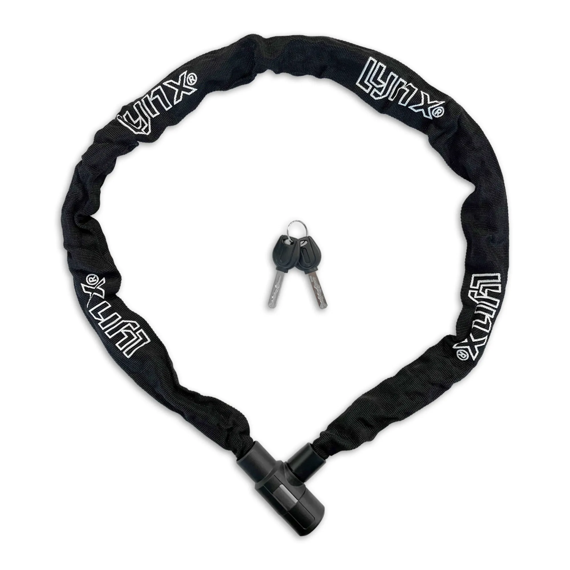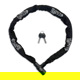 Cet Lynx antivol à chaîne noir de 120 cm est parfait pour un usage quotidien. Grâce à sa longueur, vous fixez facilement le vélo à une clôture ou un poteau, par exemple. Les maillons de la chaîne ont une épaisseur de 6 mm, ce qui vous permet de garer votre vélo en toute sécurité dans des endroits où le risque de vol est faible (parking gardé ou dans un village). Le antivol est doté d'un manchon en nylon souple pour éviter d'endommager le cadre du vélo, par exemple. Le système d'auto-click garantit que l'antivol se verrouille automatiquement lorsque vous insérez la goupille dans le corps du antivol. L'antivol est livré avec 2 clés. Avec carte coulissante.