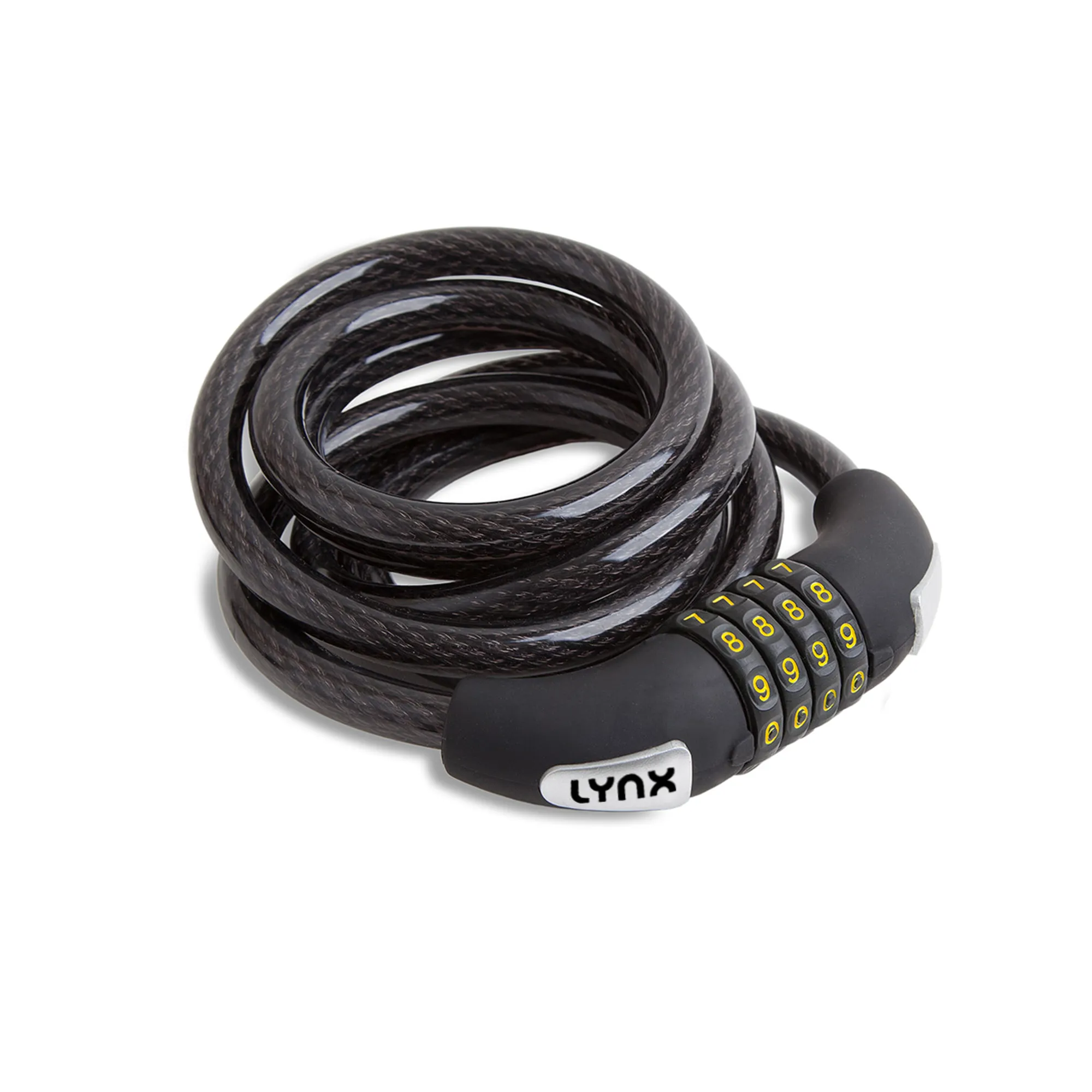 Antivol à câble à combinaison Lynx avec revêtement de protection. Fabriqué en acier trempé de 10 mm, résistant aux intempéries. Longueur 180 cm. Avec combinaison 4 fois réglable à souhait. L'antivol est livré sur une carte à suspendre.