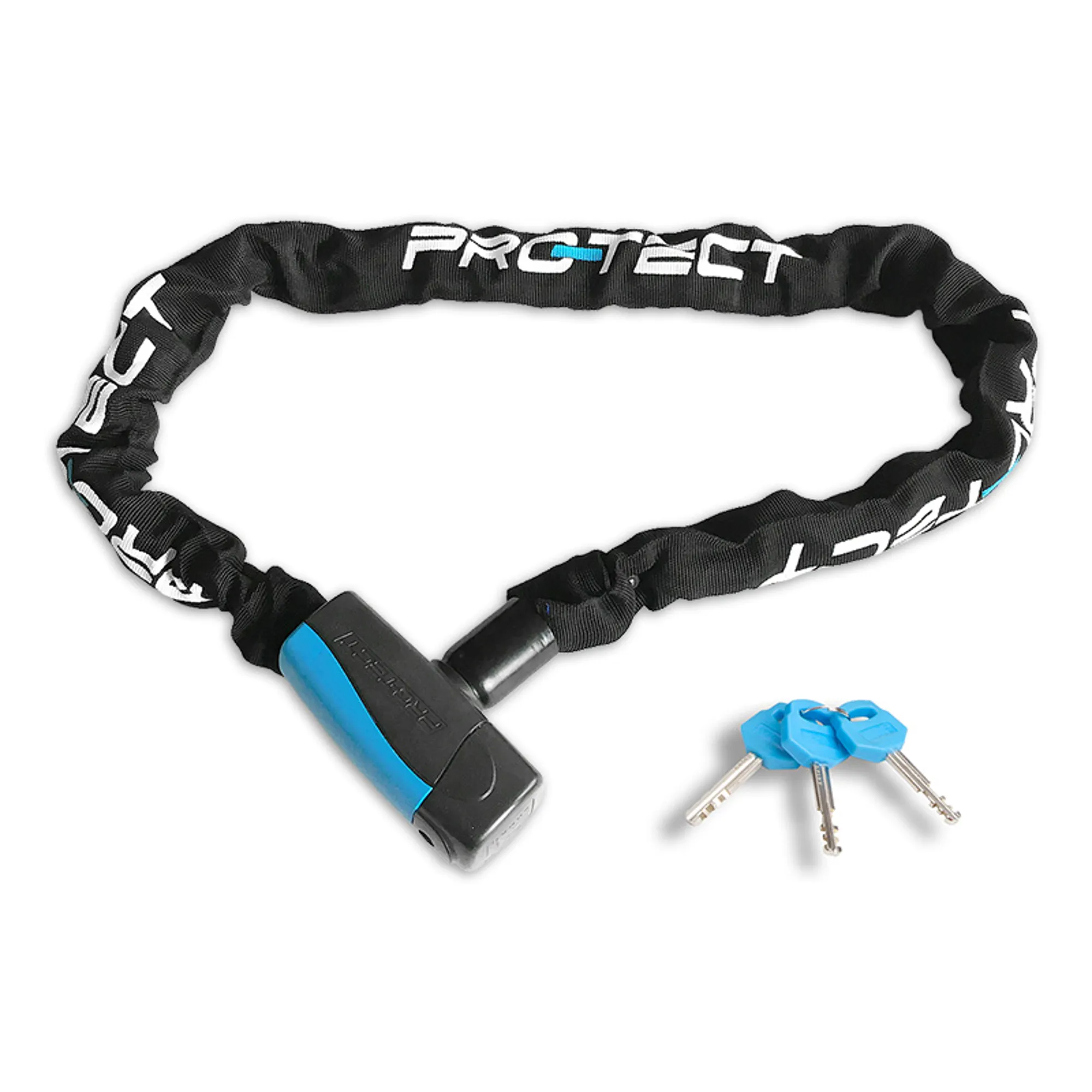 Antivol à chaîne Opal ART 3 de Pro-Tect avec fermeture automatique. L'antivol à chaîne est équipé d'une chaîne de 10 mm en acier trempé, d'une longueur de 100 cm. L'antivol est hautement protégé contre le perçage et le découpage. La housse en nylon protège la peinture de la moto ou du scooter. Livré avec une carte d'information et 3 clés.