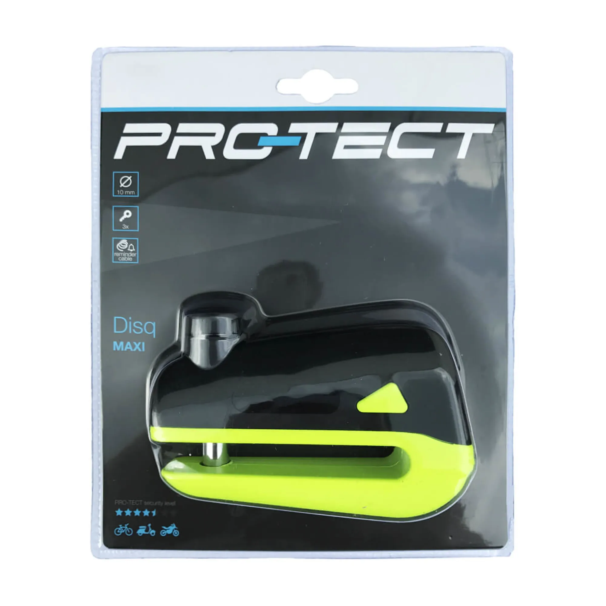 Antivol bloque disque de frein Maxi de Pro-Tect avec goupille de fermeture de 10 mm d'épaisseur. Très facile à utiliser grâce au cylindre "Push down" qui ferme l'antivol d'un simple clic. Le trou de l'antivol est verrouillable, de sorte que la poussière et la saleté ne peuvent pas pénétrer. Cet antivol est livré avec une pochette de rangement pratique, 3 clés et un câble de mémoire. Emballage sous blister.
