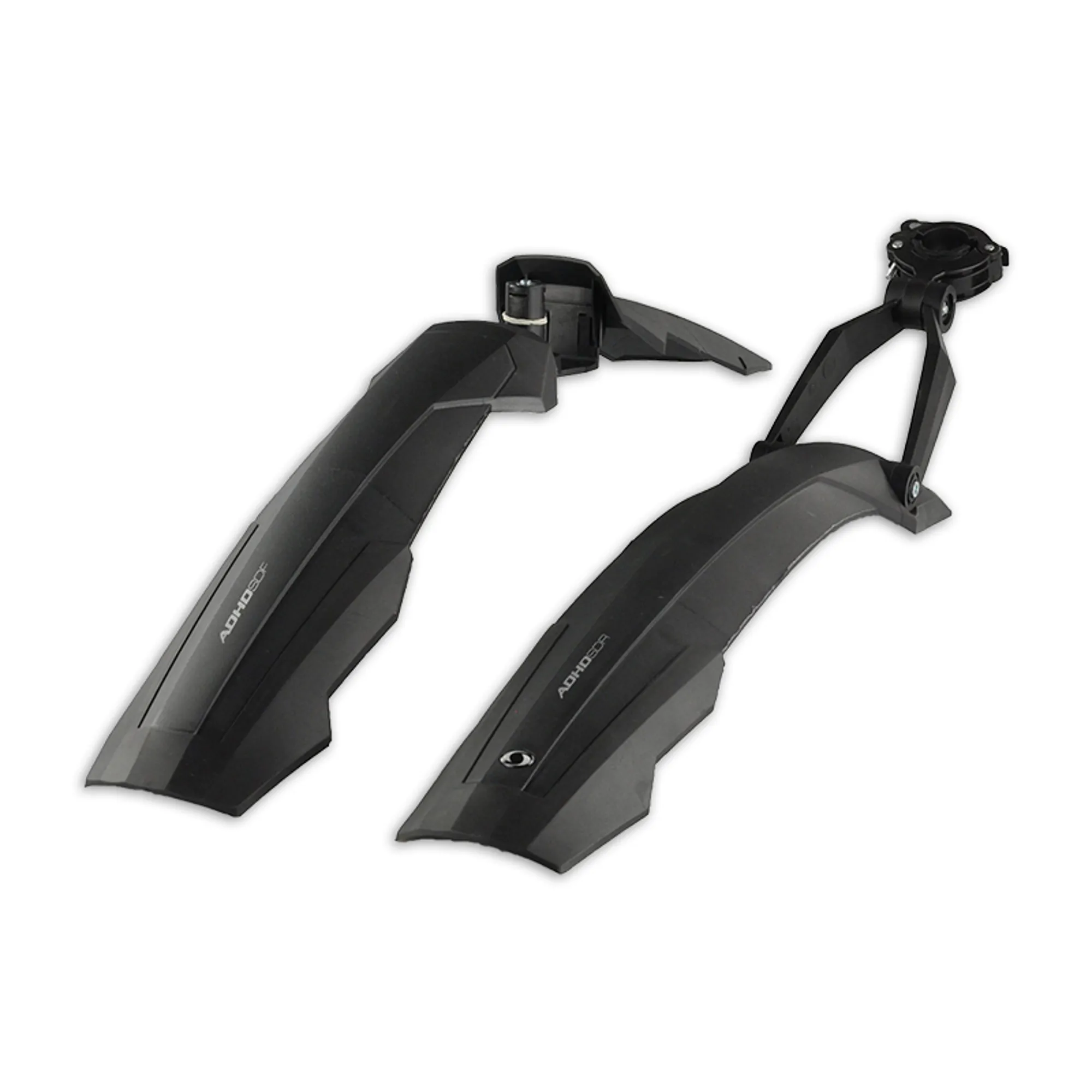 Le set de garde-boue ADHD Short Simpla est fabriqué en plastique, un matériau flexible très résistant aux dommages. Les garde-boue sont faciles et rapides à monter, le garde-boue avant est fixé au tube de direction (Speed-click) et le garde-boue arrière à la tige de selle (Speed-clamp). Les garde-boue sont équipés d'éléments réfléchissants pour améliorer la visibilité et la sécurité dans la rue. Le set offre au cycliste une protection maximale contre la saleté grâce à une protection accrue de la surface. Les côtés intérieurs spécialement polis des garde-boue empêchent la boue de s'incruster, et dès qu'elle entre en contact avec de l'eau, un effet d'auto-nettoyage se produit. Ces garde-boue conviennent aux VTT équipés de pneus de 26 à 27,5 pouces. Couleur: noir.