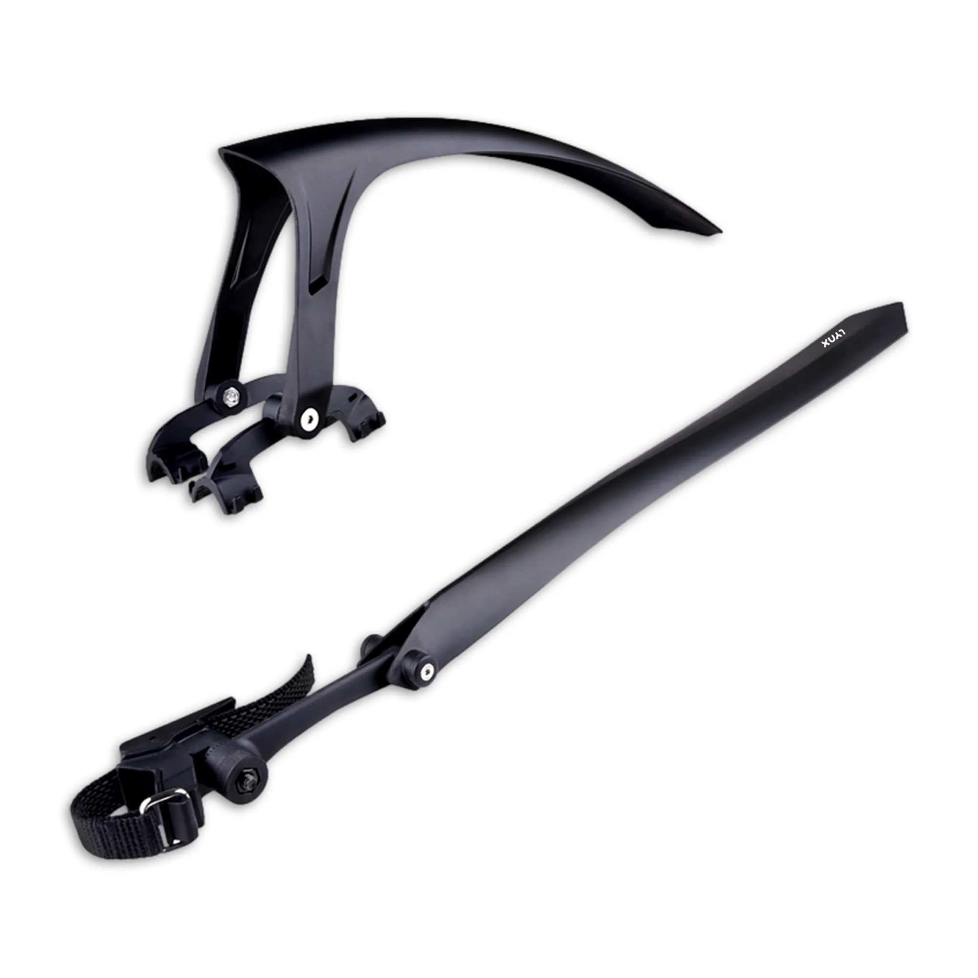 Ce set de garde-boue léger de la marque Lynx est conçu pour les vélos de route avec roues de 28 pouces et pneus jusqu’à 35 mm de large. Il offre une protection efficace contre les éclaboussures tout en conservant le profil aérodynamique du vélo. Le garde-boue avant se fixe à la fourche, tandis que le garde-boue arrière se monte sur la tige de selle à l’aide d’une sangle réglable. Son design fin et son poids réduit en font un choix parfait pour les sorties sportives, même par temps incertain. Livré avec tout le matériel de fixation nécessaire.