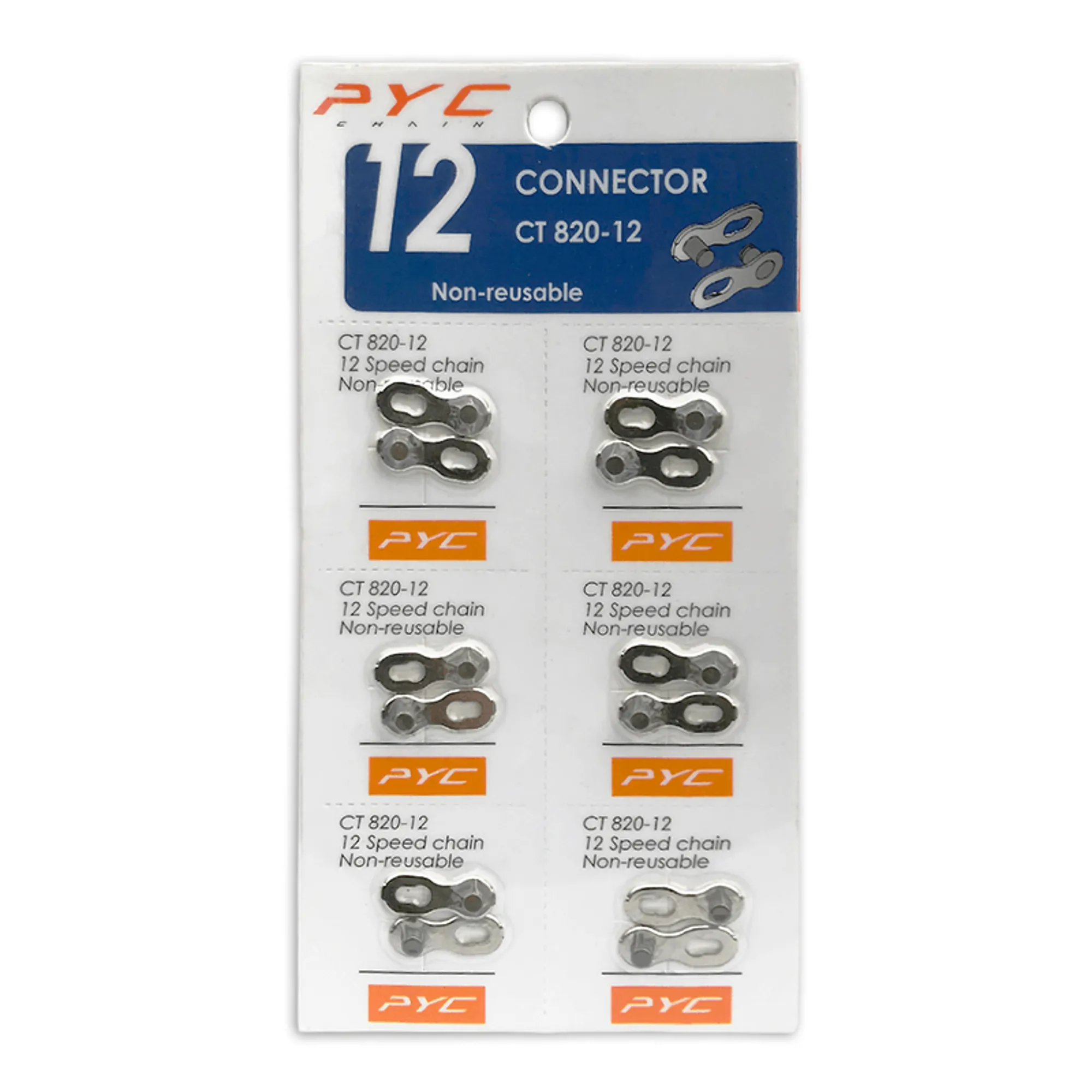 Maillon de chaîne de PYC 12 vitesses. Fourni sur une carte de 6 pièces. Non réutilisable.