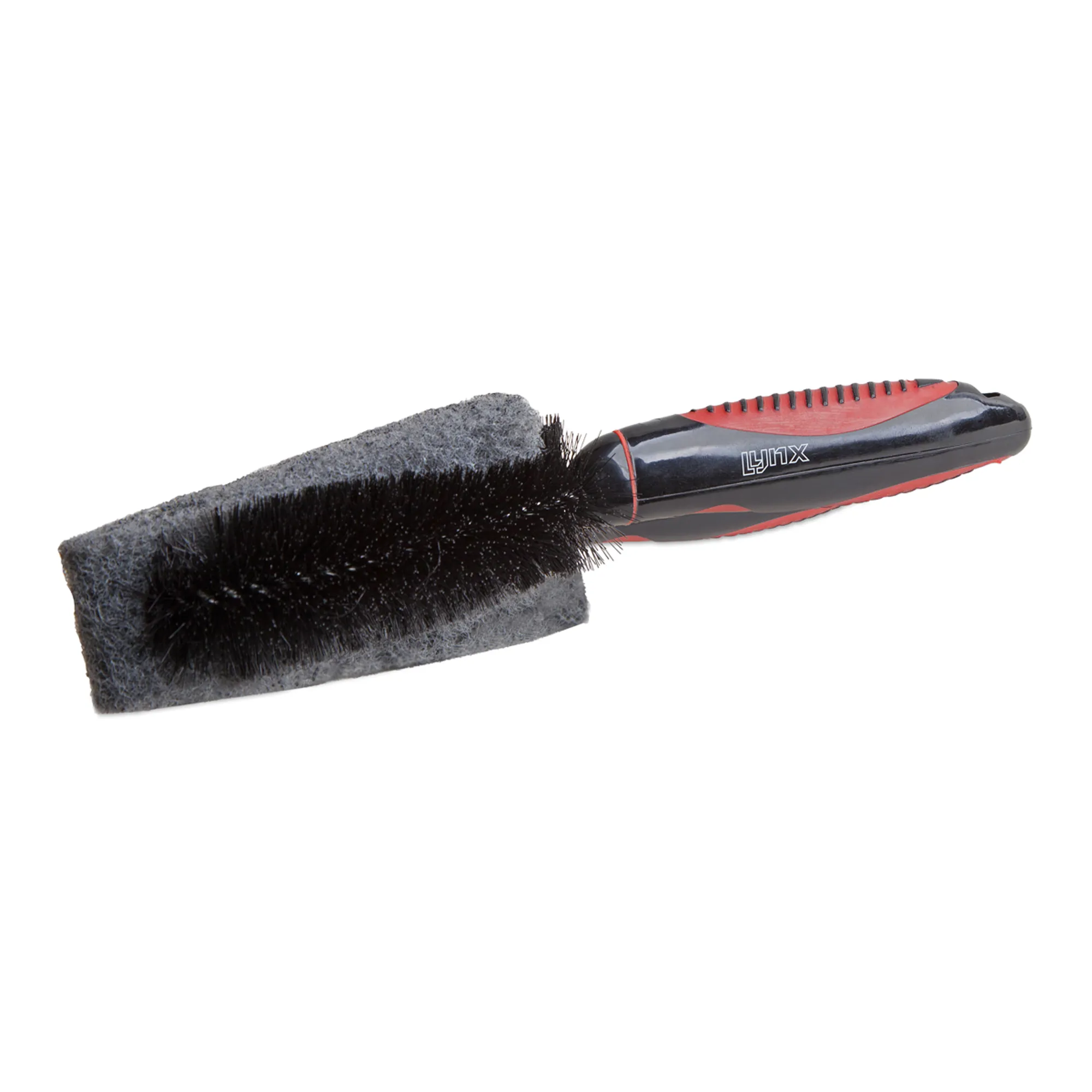 La brosse/éponge à récurer Lynx est une combinaison de poils moyennement durs et d'une éponge à récurer. Ce mix rend la brosse idéale pour frotter la boue incrustée. Sur une carte suspendue.