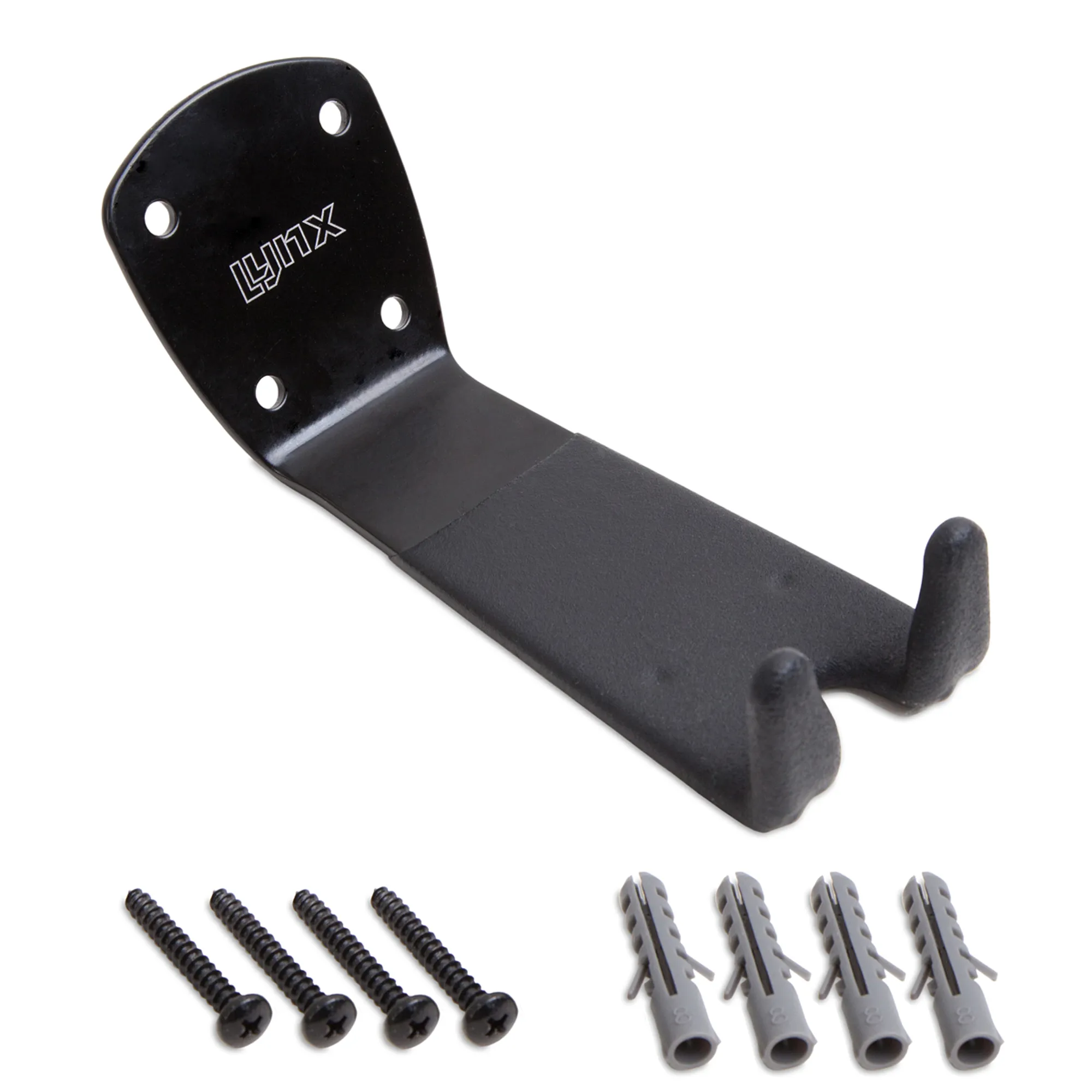 Ce support mural pratique de Lynx permet de suspendre facilement le vélo par la pédale. La construction simple mais solide en acier permet à la pédale de reposer sur le support, qui est recouvert d'un revêtement époxy pour une meilleure adhérence et une meilleure protection. Livré avec le matériel de montage.