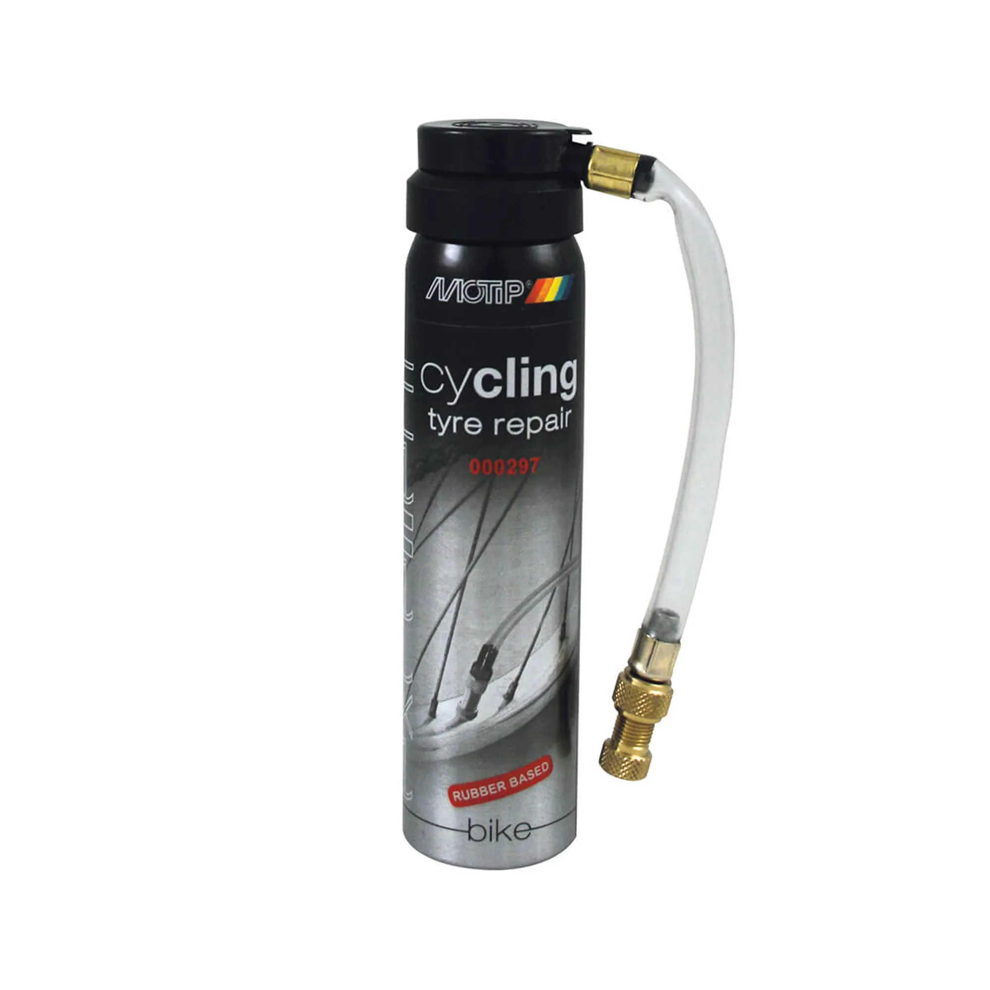 La réparation de pneus Motip Cycling est un spray à base de caoutchouc qui permet de réparer les pneus de vélo en cas d'urgence. Tyre Repair est un spray de réparation pour les petites crevaisons et peut être utilisé sans démonter le pneu. Applications: chambres à air. 75 ml.