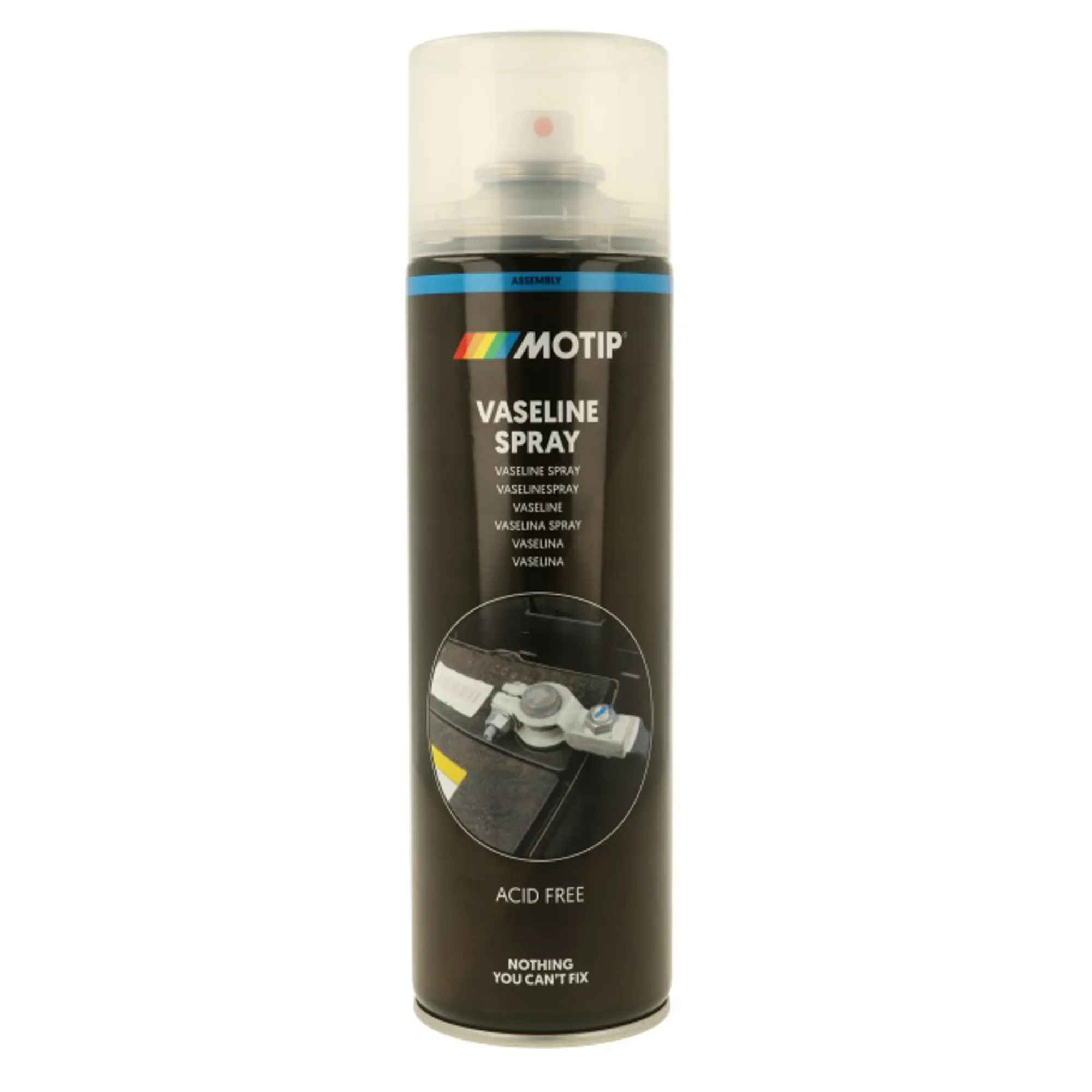 Motip Vaseline Spray est un lubrifiant et un protecteur transparent et universel. Il prévient l'usure et le collage et a un effet anticorrosion. Hydrofuge, pH neutre et résistant aux intempéries. Applications: joints de vis et jantes.