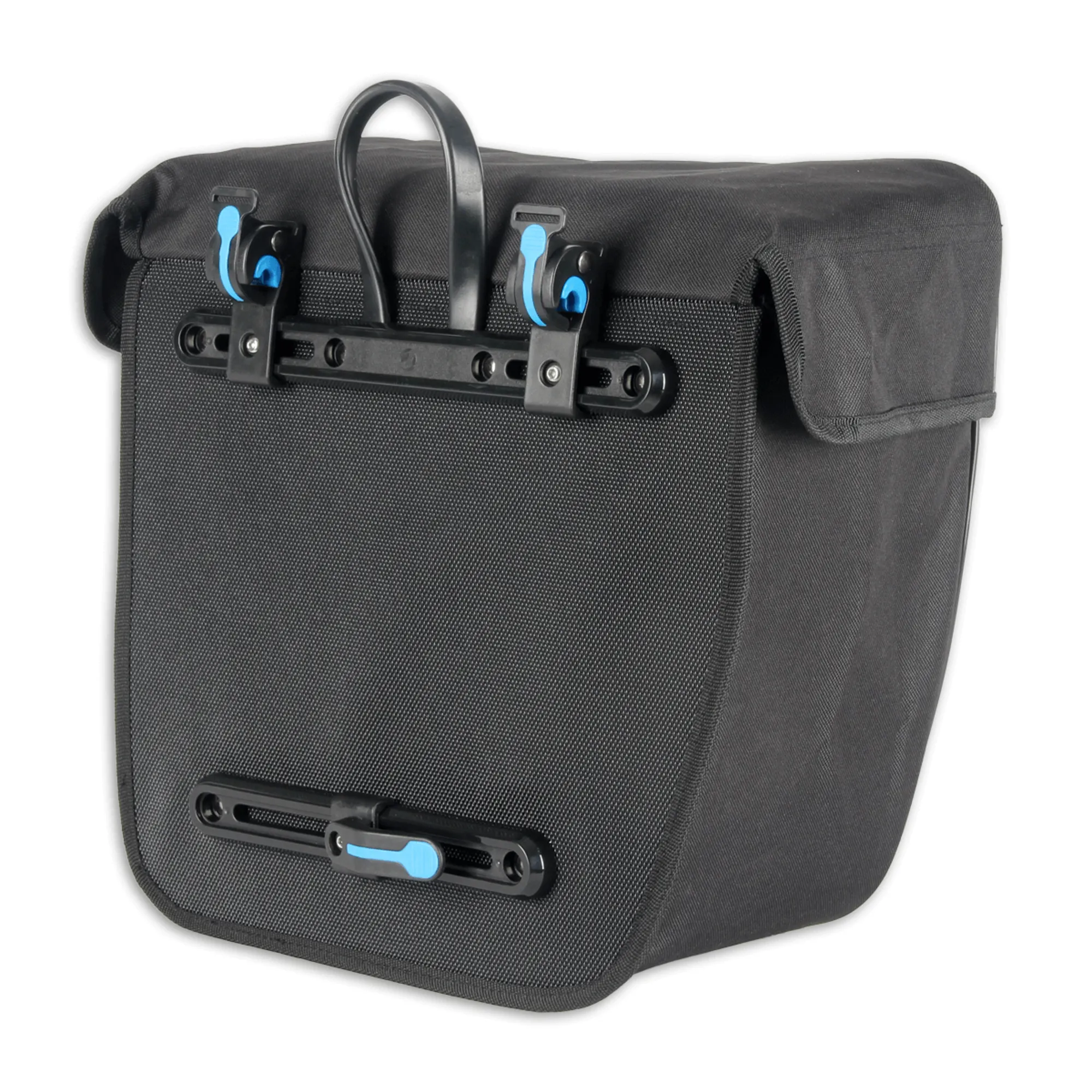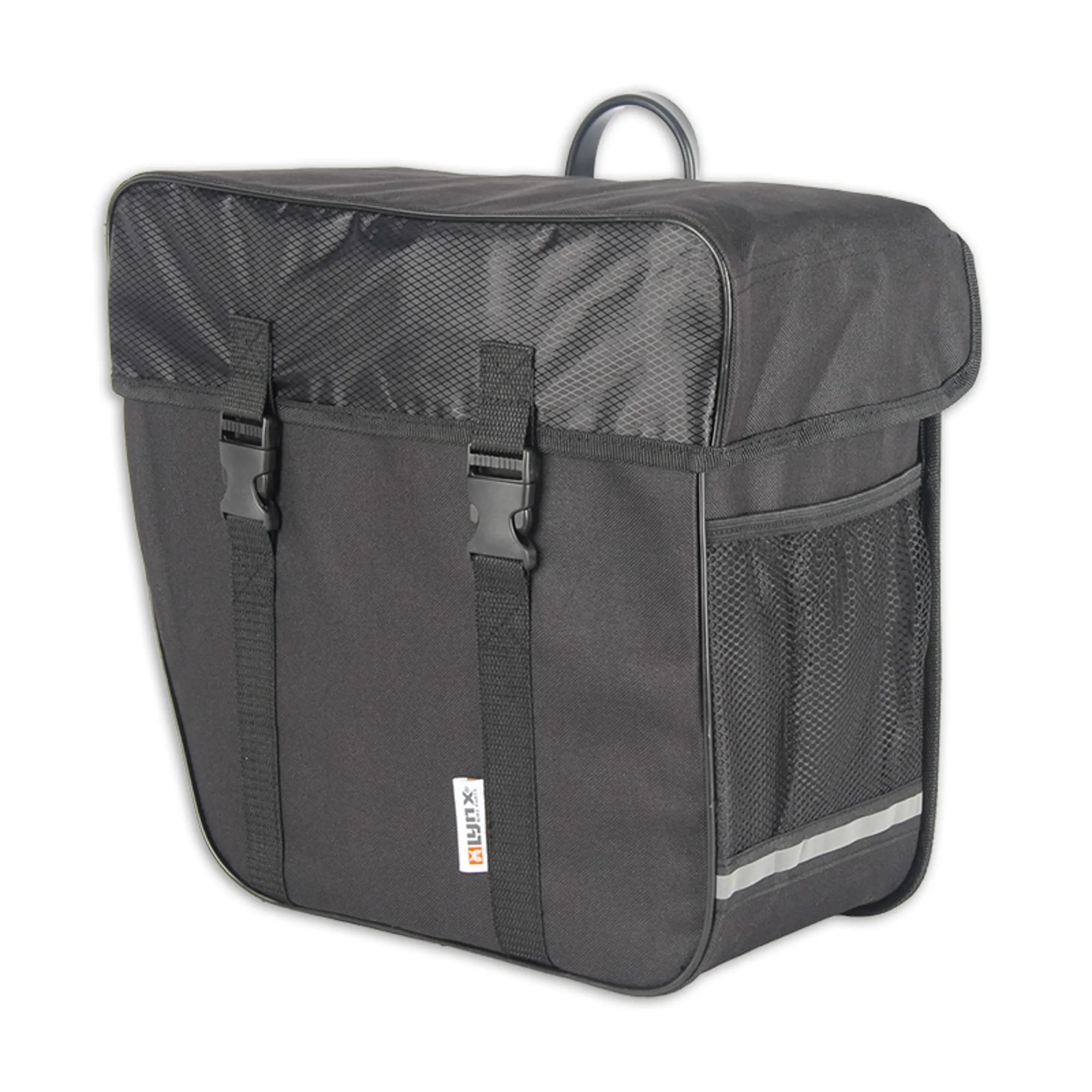 Cette sacoche simple de Lynx est un sac de transport parfait pour tout vélo de femme ou d'homme. Le sac est fabriqué en polyester 600D et rip-stop avec un revêtement en PVC, ce qui le rend imperméable. Sa poignée robuste et sa capacité de 17 litres en font un sac idéal pour les achats. Cette sacoche utilise le système de fixation rapide, ce qui permet de l'attacher au vélo électrique. La sacoche peut être fixée à un porte-bagages dont l'épaisseur du tube est de Ø 8 à 15 mm. La sacoche possède également un arrondi sur le côté afin d'éviter les chocs lors du pédalage, ce qui favorise la longévité de la sacoche. Avec carte d'information.