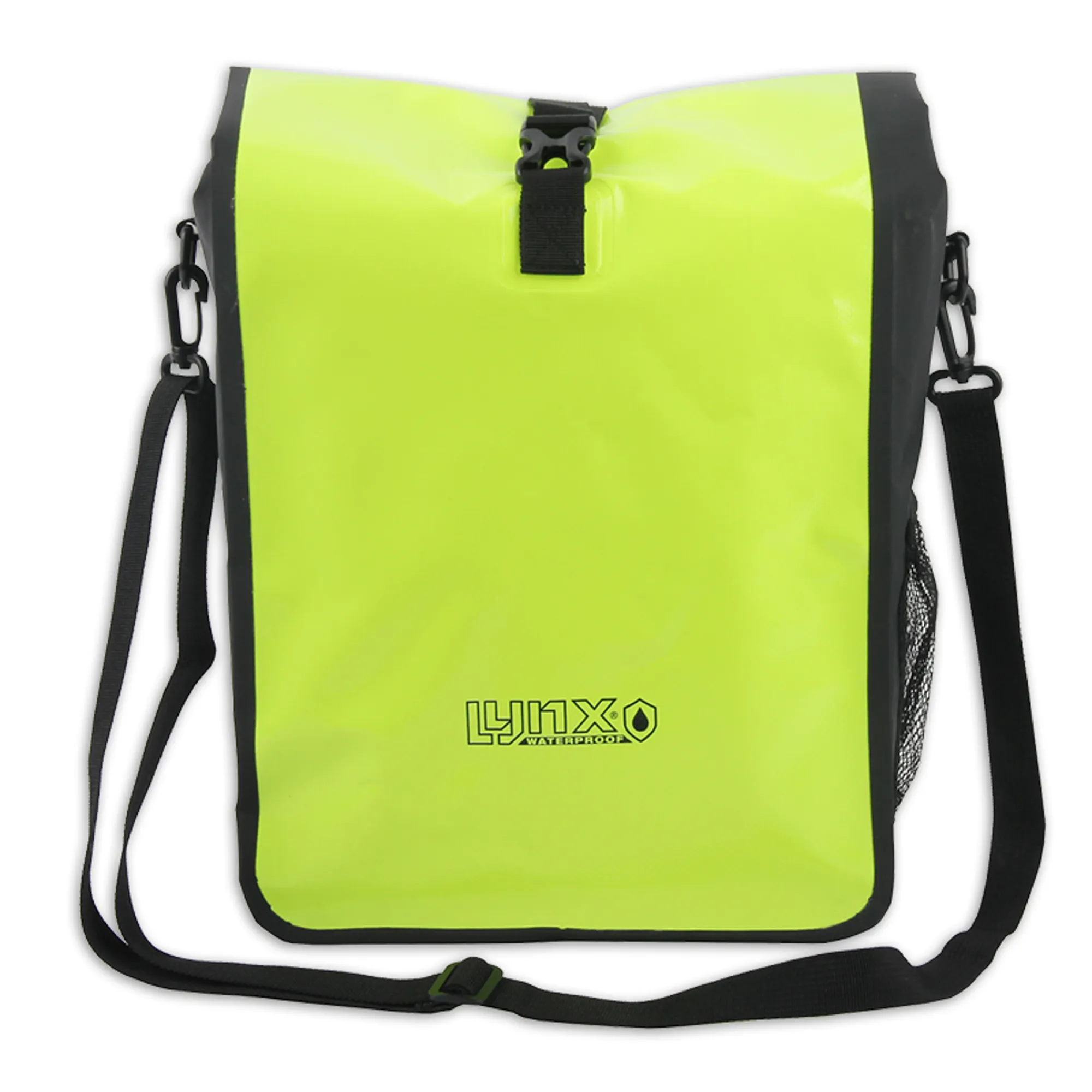 Cette sacoche simple Valley L de Lynx, en noir et jaune néon, est 100% imperméable. Le jaune néon frappant et les éléments réfléchissants contribuent à une bonne visibilité dans la circulation. La sacoche est livrée en standard avec une bandoulière, ce qui la rend facile à transporter, par exemple au supermarché ou dans le train. La sacoche est fabriquée en PVC/Tarpaulin extrêmement solide, ce qui permet de charger au maximum ce sac de 21 litres. À l'arrière de la sacoche, deux crochets de fixation permettent d'attacher facilement la sacoche au porte-bagages arrière. Avec carte d'information.