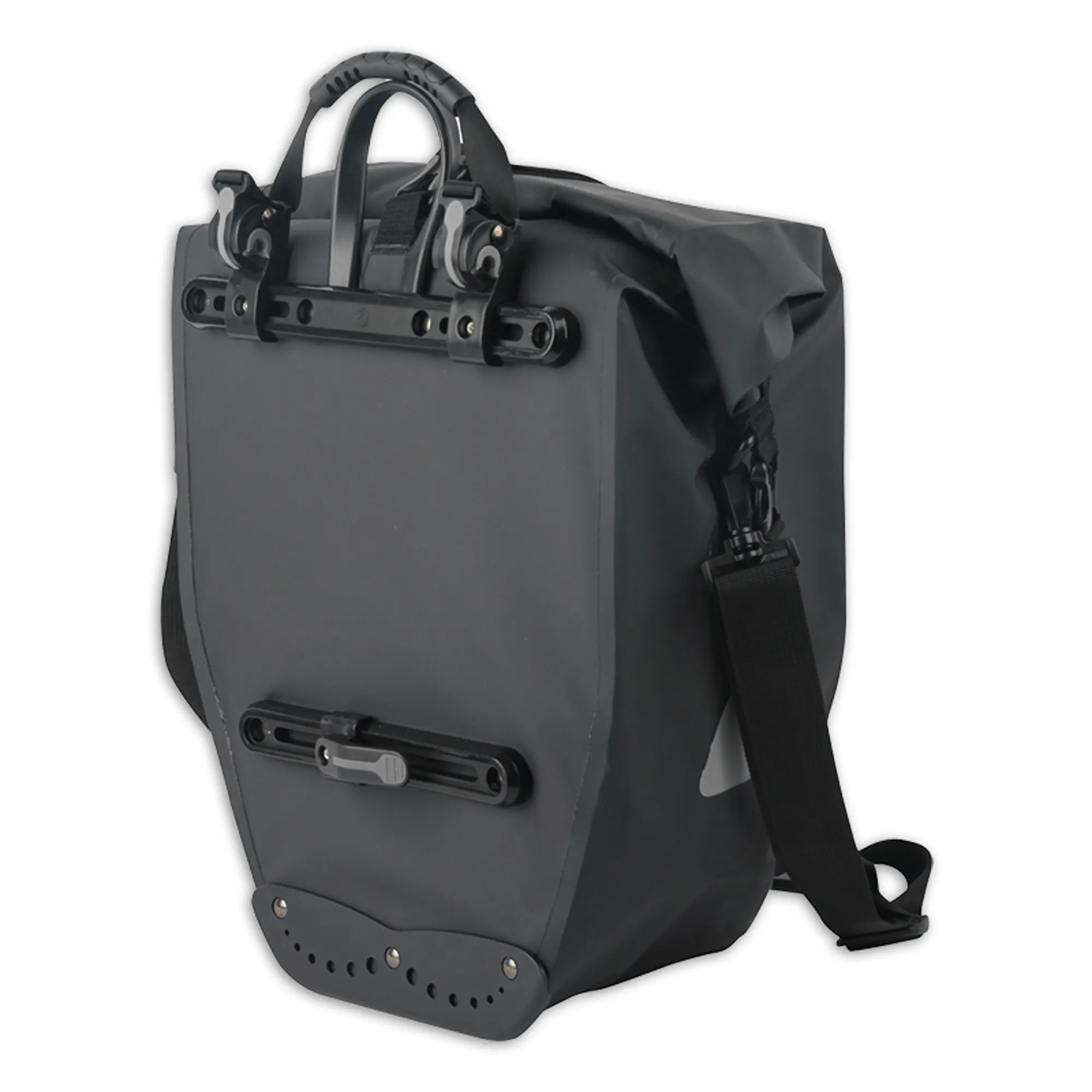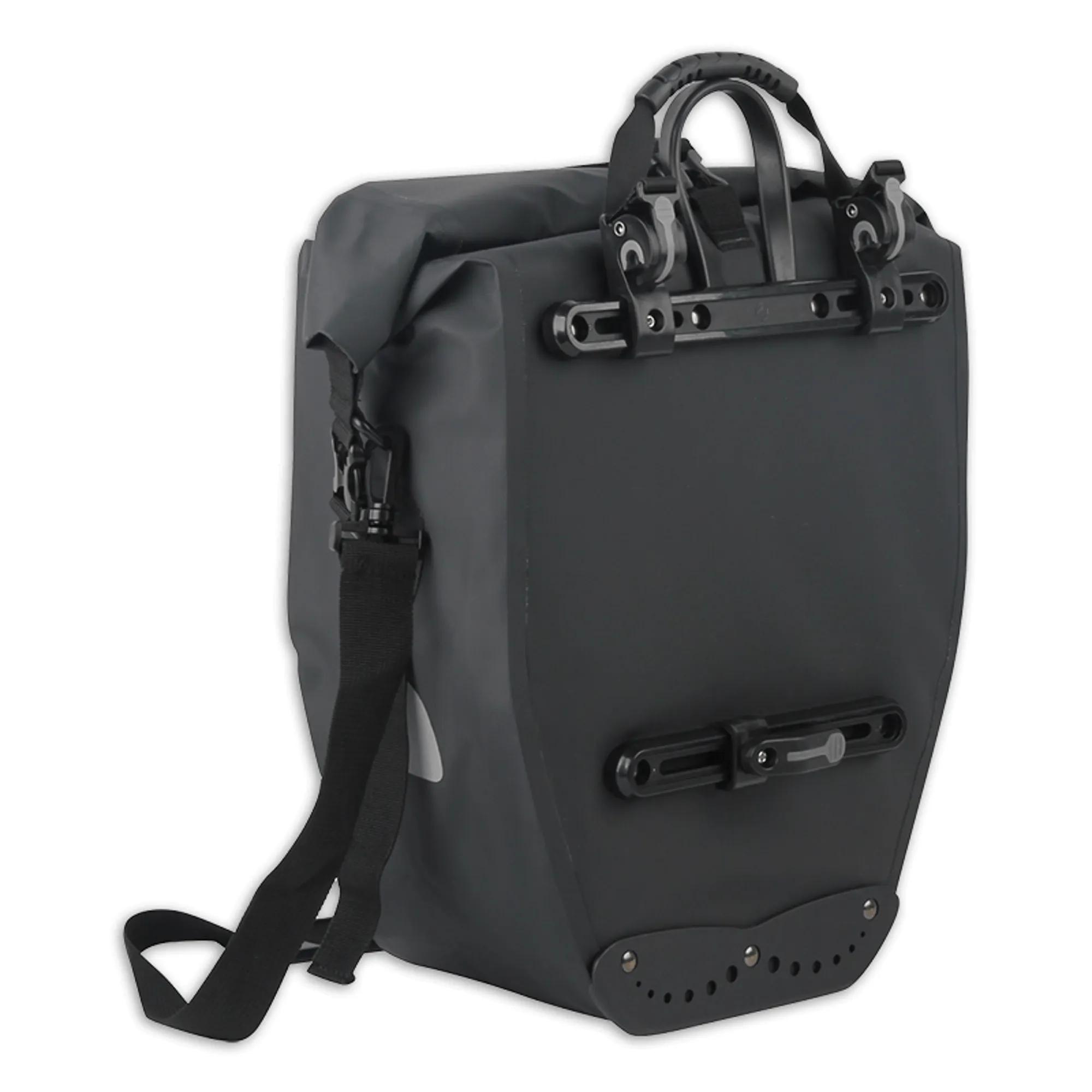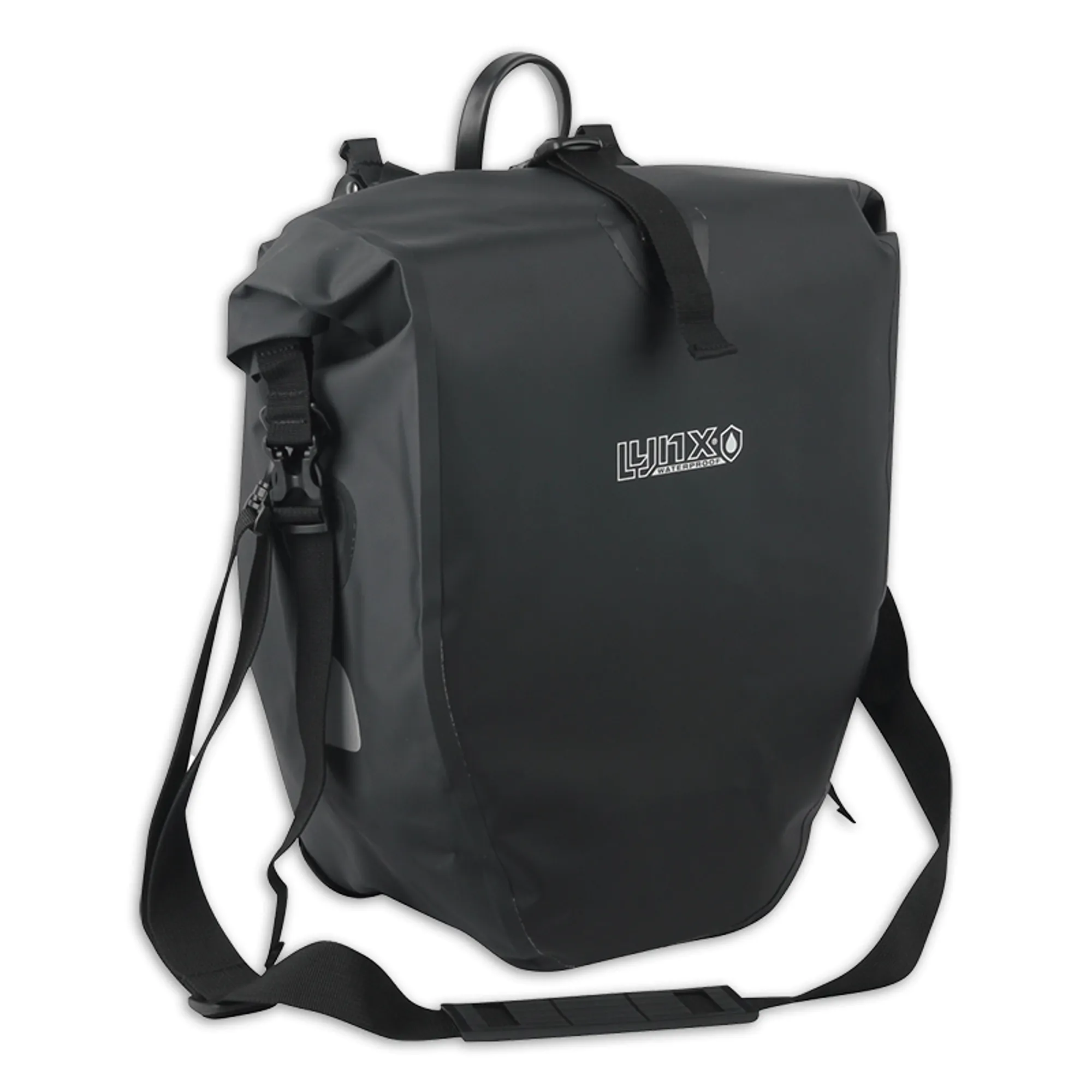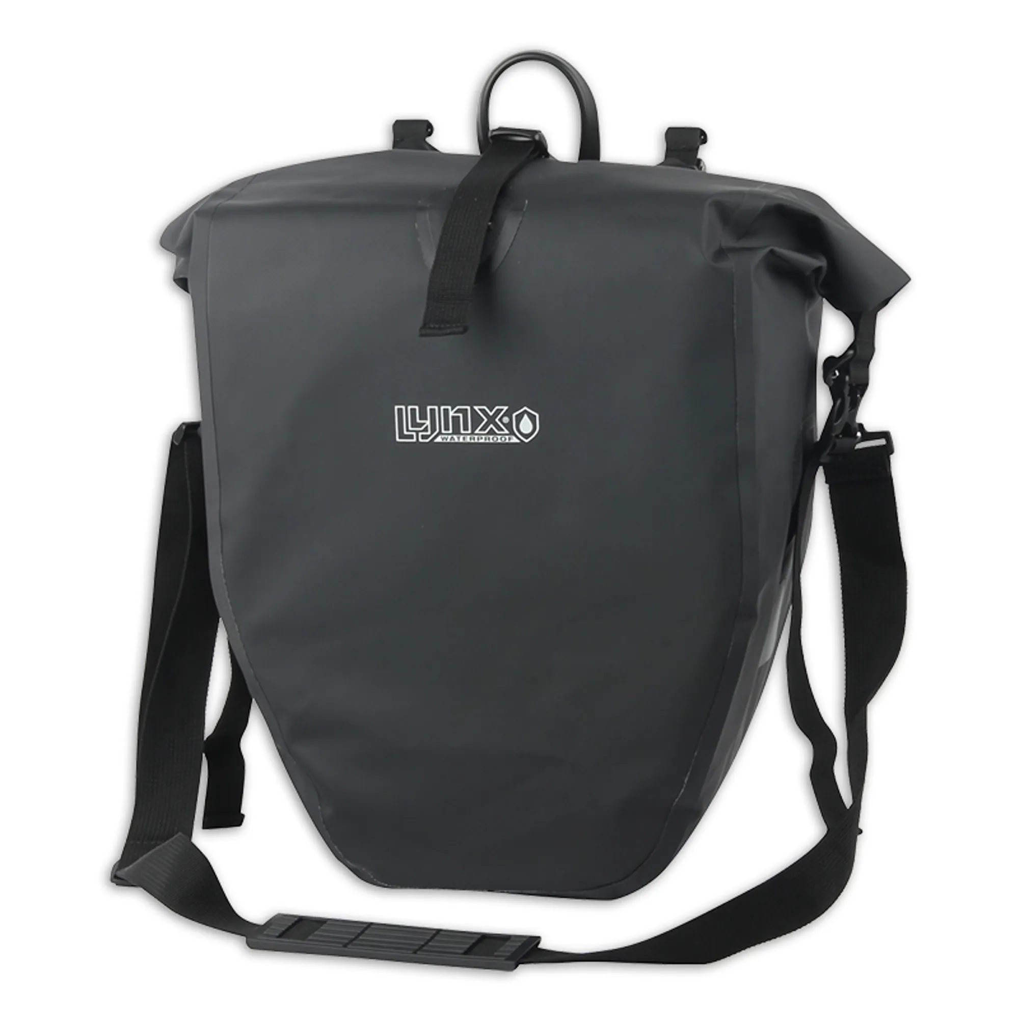 La sacoche à vélo noire Rocky de Lynx est une sacoche de haute qualité fabriquée en bâche 100% imperméable. Ce matériau solide et lisse crée un design élégant, mais rend également la sacoche puissante. En effet, la sacoche a une capacité de pas moins de 29 litres. La sacoche est équipée d'une fermeture à enroulement et peut être fermée à l'aide de 3 boucles cliquables. Sur le dos durci de la sacoche se trouvent des crochets d'attache coulissants pour le porte-bagages. Le système de montage rapide permet de fixer facilement la sacoche sur un porte-bagages dont l'épaisseur du tube est comprise entre 8 et 15 mm. Grâce à la poignée pratique, vous pouvez facilement retirer la sacoche du porte-bagages, puis la transporter avec vous grâce à la bandoulière fournie de série. Pour une meilleure visibilité, la sacoche est dotée d'éléments réfléchissants sur deux côtés. Avec carte d'information.