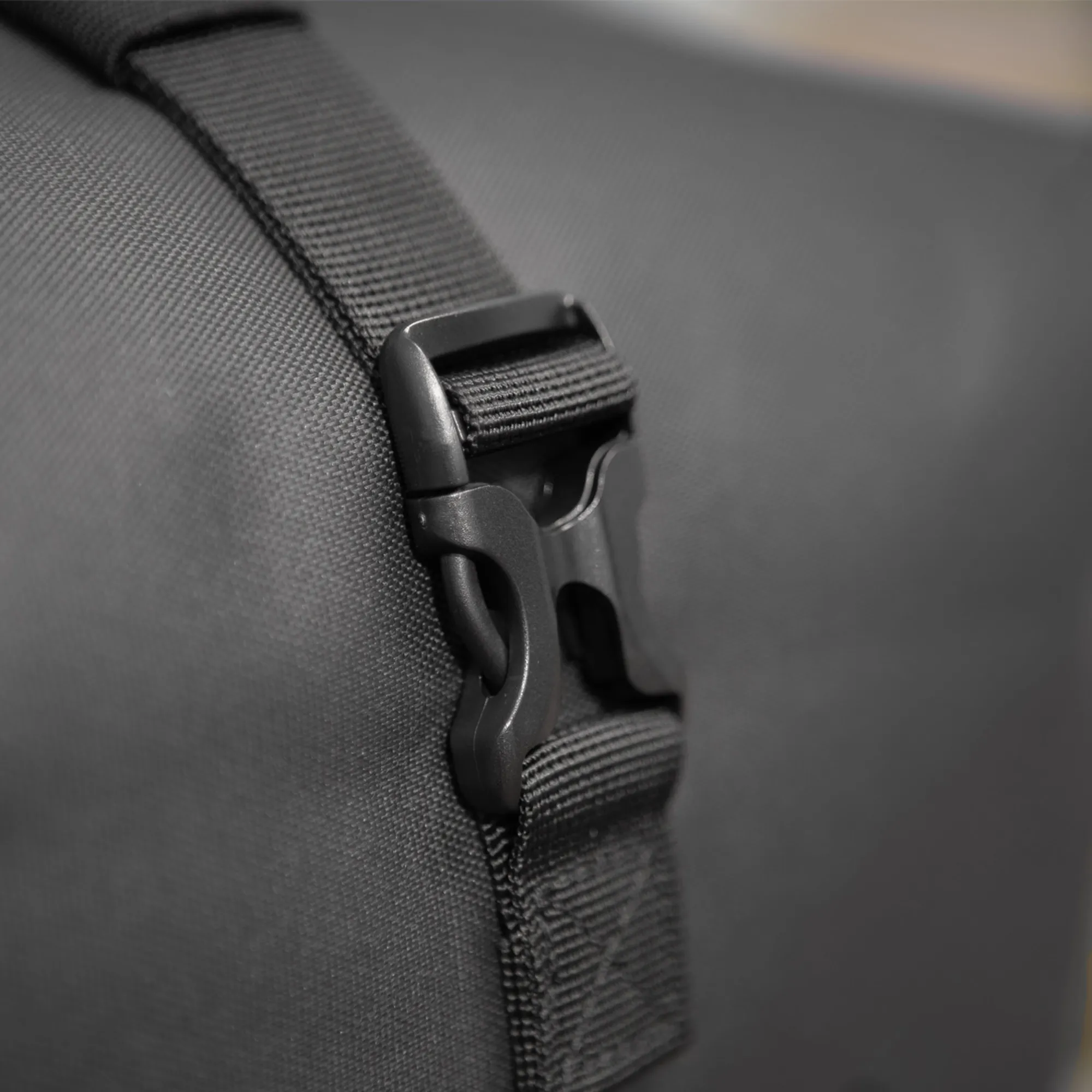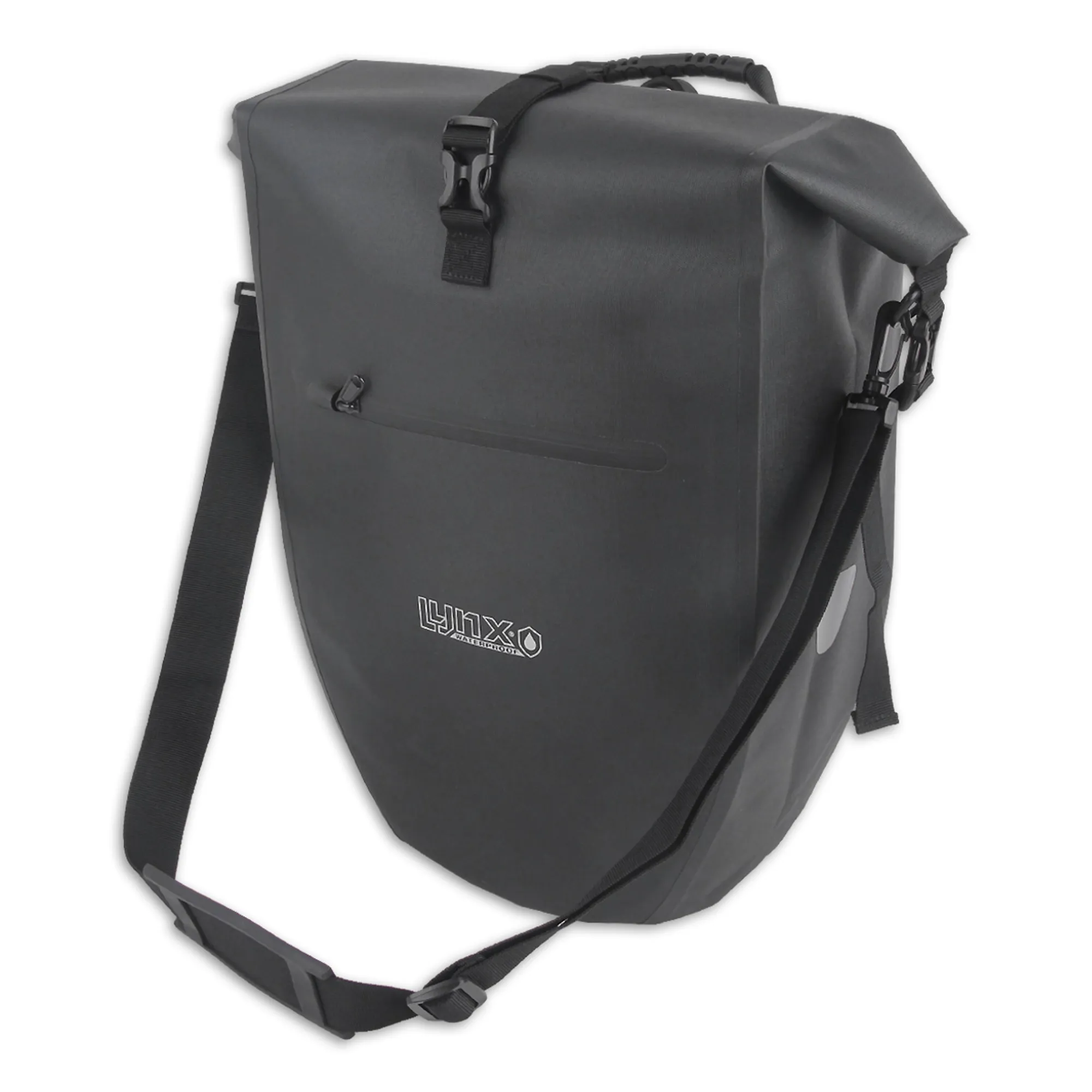Cette sacoche de vélo Lynx Hayes, noire, élégante et fonctionnelle, est idéale pour les trajets quotidiens, mais aussi pour les achats quotidiens ou les vacances à vélo. La sacoche est fabriquée en polyester 600D TPU résistant et robuste. Ce tissu rend la sacoche 100% imperméable, flexible et douce au toucher. Grâce au système de fixation rapide réglable, vous pouvez facilement et en toute sécurité attacher la sacoche au porte-bagages (épaisseur du tube de Ø 8 à 16 mm), où vous pouvez également l'enlever avec la même facilité.
