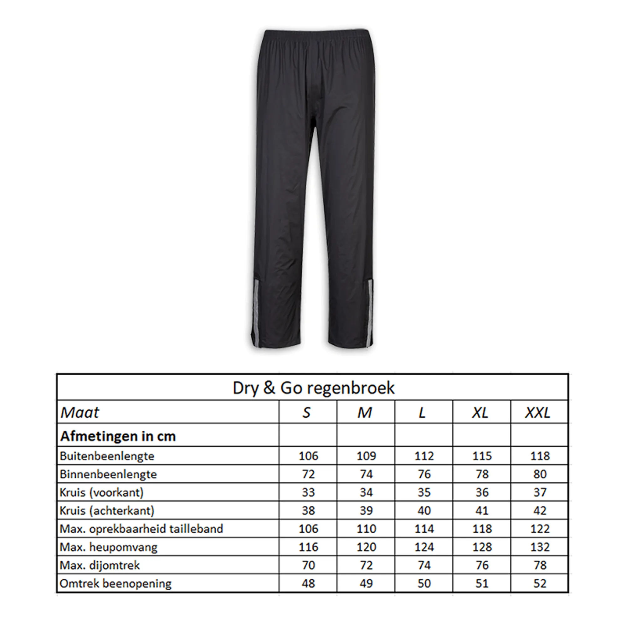 Avec ce pantalon de pluie Dry et Go noir de Lynx en taille XL, faire du vélo sous la pluie se fait sans souci. En effet, le pantalon de pluie est imperméable grâce au matériau en nylon et aux coutures étanches. Enfin, le nylon a une bonne respirabilité, ce qui garantit une bonne ventilation. Le pantalon de pluie est facile à enfiler et à enlever grâce aux longues fermetures à glissière situées au bas des jambes. Une fermeture velcro passe au-dessus de cette fermeture éclair pour une étanchéité maximale. Les ouvertures des jambes du pantalon peuvent être ajustées à l'aide d'une bande velcro, selon les besoins. Pour une meilleure visibilité dans la circulation, des éléments réfléchissants sont placés au bas des jambes du pantalon. Livré avec un sac de rangement.