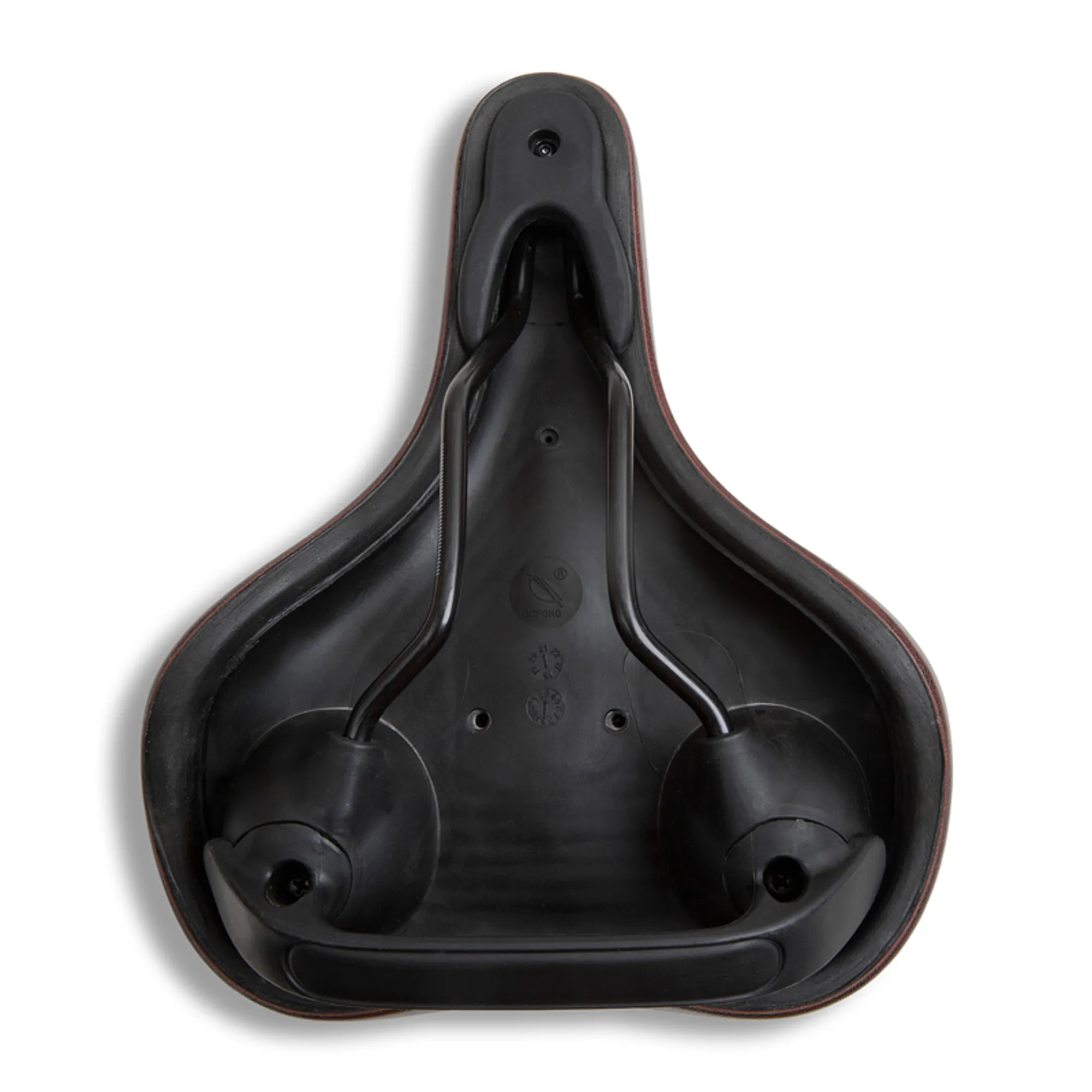 La selle marron E-comfort de Selle Orient a un avantage important: elle est équipée d'une poignée à l'arrière, ce qui permet de déplacer facilement les vélos les plus lourds, tels que les vélos électriques. Grâce à sa production sous vide, la selle présente une finition de haute qualité. En effet, la selle est imperméable, exempte de toxines et offre un confort maximal grâce au rembourrage en mousse de PU Hi-Density. Sur carte à suspendre.