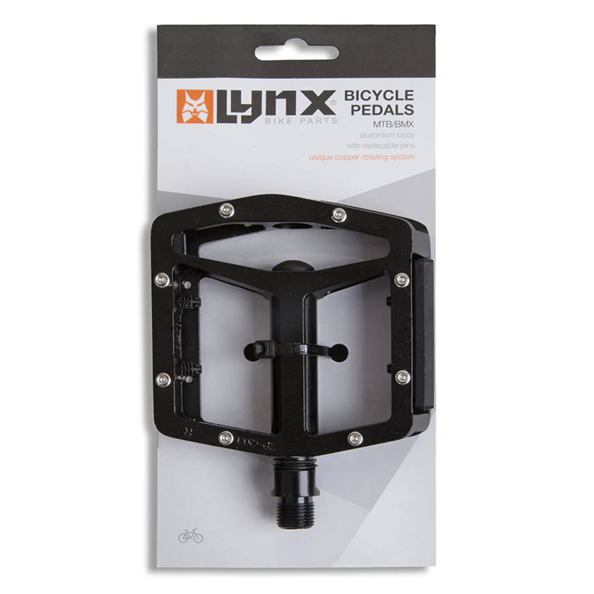 Cette pédale Lynx noire pour vélo BMX et VTT est équipée d'un roulement en cuivre de haute qualité (ZP bearing), ce qui permet à la pédale de tourner très facilement sur son axe et d'augmenter sa durée de vie. La pédale a un corps en aluminium et un axe en acier au bore, ce type d'acier étant plus résistant que l'acier normal grâce à l'ajout de bore. Les pédales sont équipées de réflecteurs K-mark pour une meilleure visibilité dans l'obscurité. Les goupilles montées sur la pédale sont faciles à remplacer à l'aide d'une clé Allen. Il est possible de monter la pédale avec une clé Allen. Sur carte à suspendre. Les goupilles sont disponibles séparément, voir no. d'art. 613199.