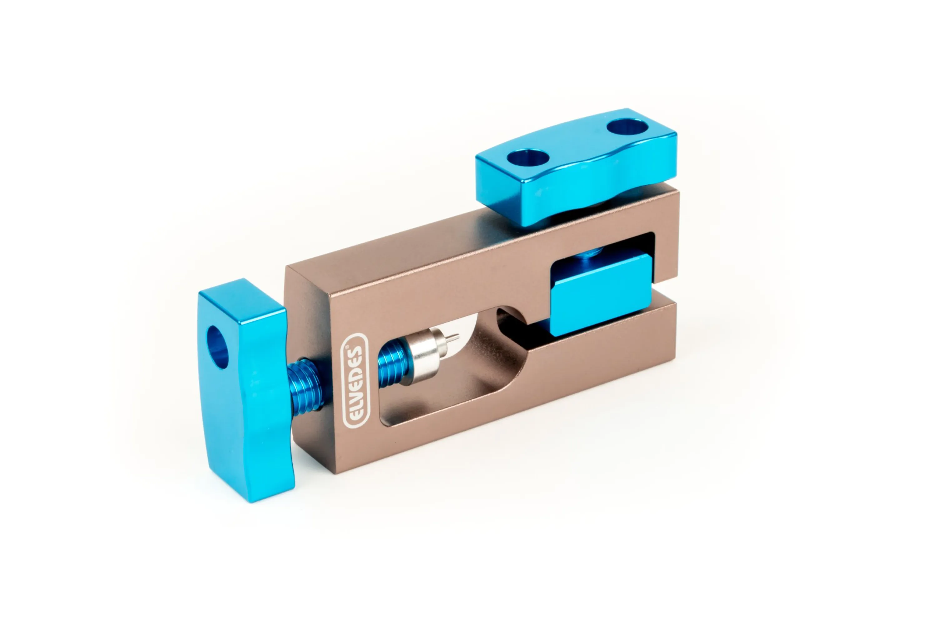 Cette presse de Elvedes est conçue pour presser des inserts dans des tuyaux hydrauliques rapidement et facilement.