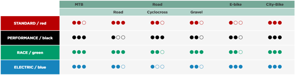 - De standaard lijn; biedt hoge prestaties voor alle soorten rijders.