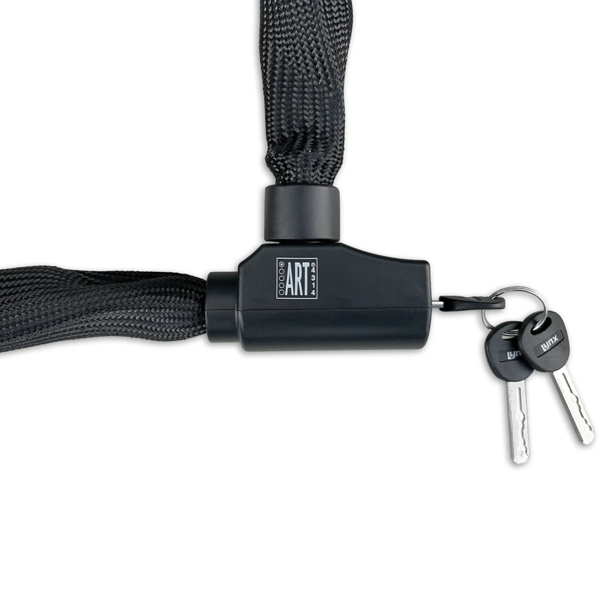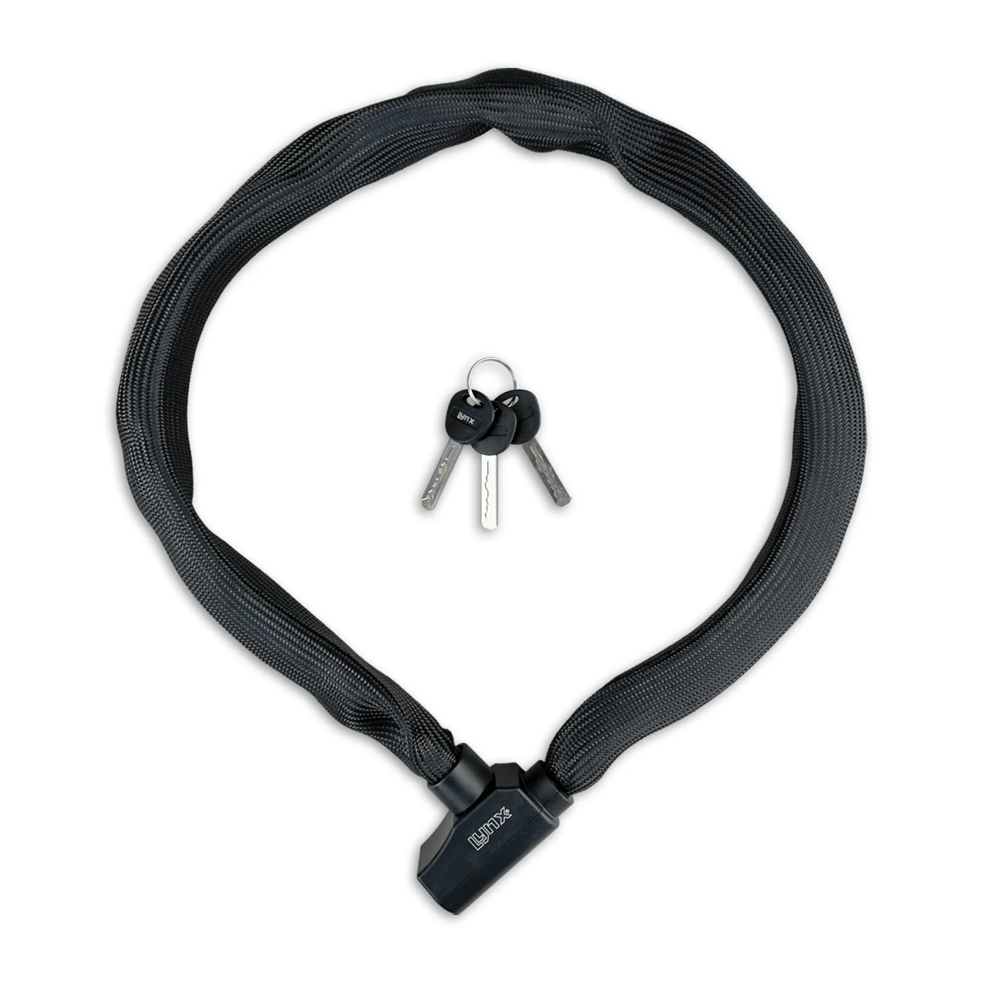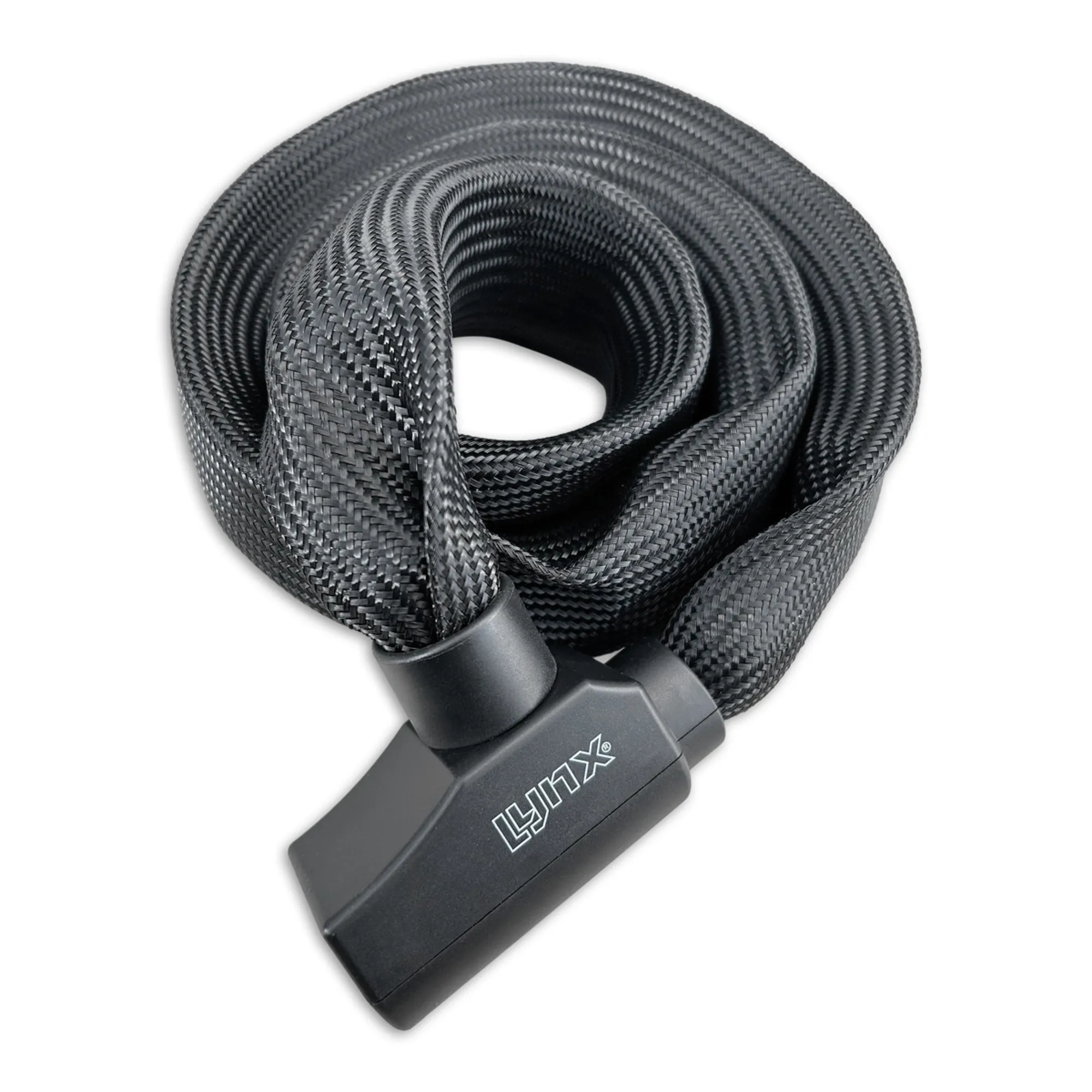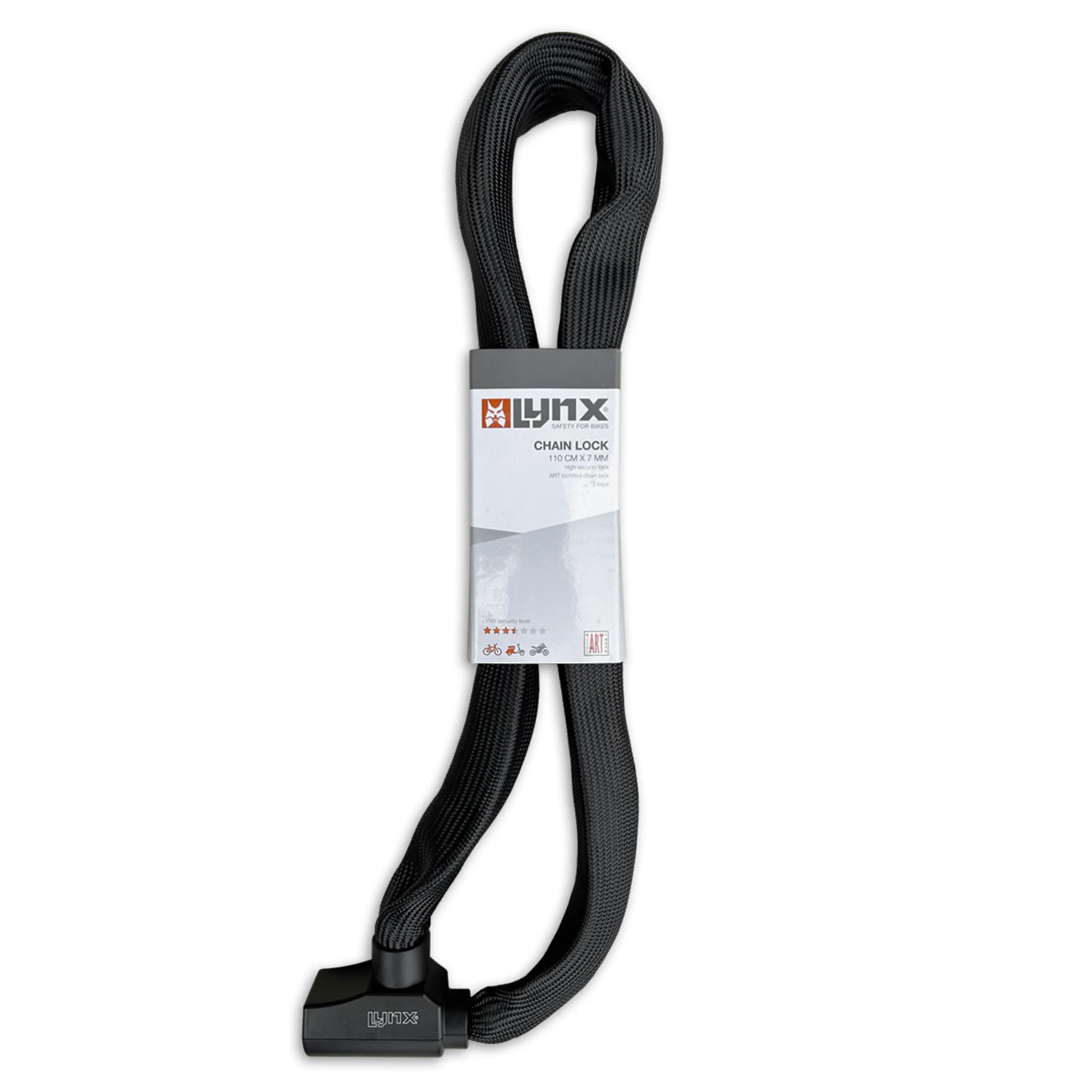 Het kettingslot Terrix+ van Lynx is een uitstekende keuze voor fietsers die op zoek zijn naar een betrouwbaar slot. Dit ART 1 goedgekeurde* slot voldoet aan de Europese EN 15496 veiligheidsnorm en biedt daarmee een stevige basisbeveiliging. Met een lengte van 110 centimeter en 7 millimeter dikke schakels is dit kettingslot ideaal om je fiets veilig vast te zetten aan een vast object. Met een gewicht van slechts 1565 gram is de Terrix+ licht genoeg om makkelijk mee te nemen. Daarnaast zijn de kettingschakels voorzien van een flexibele mesh hoes, die je fiets beschermt tegen krassen en beschadigingen. Met infokaart.