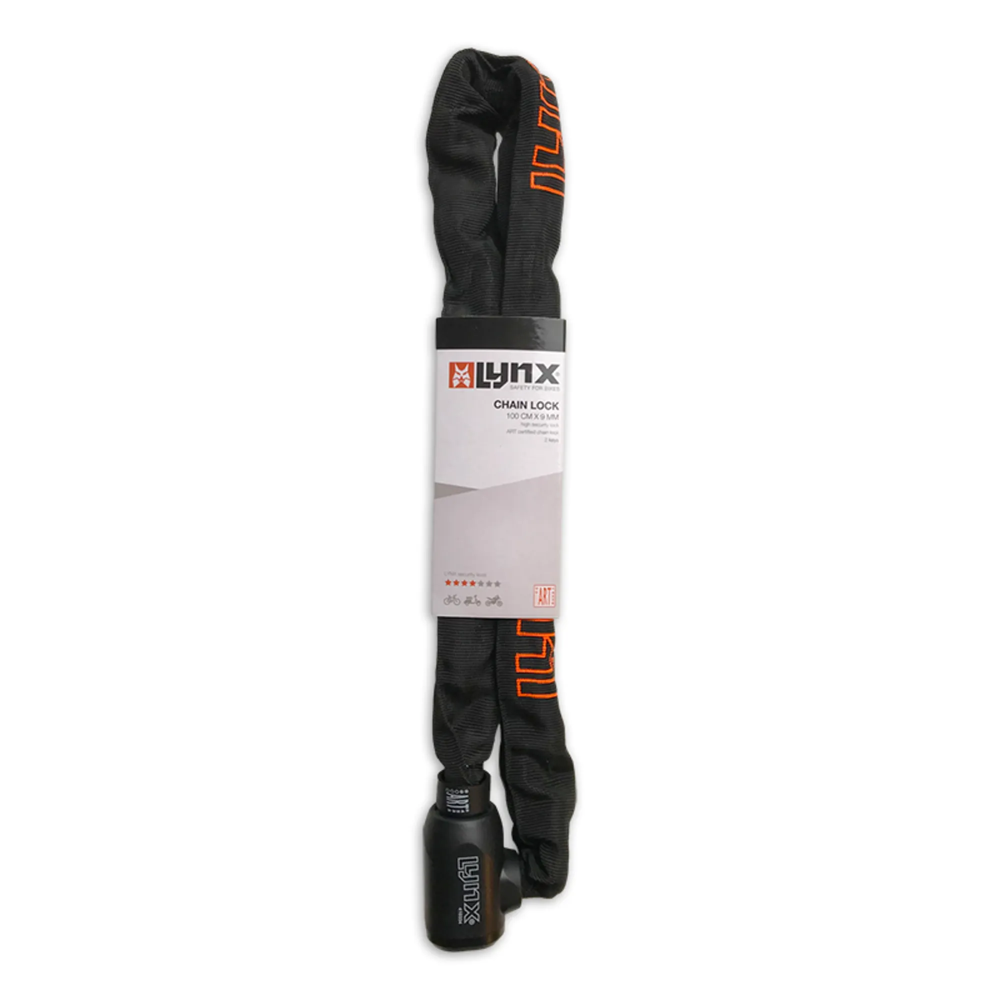 Met dit 100 cm lange ART 2 kettingslot van Lynx is iedere fiets maximaal beveiligd tegen diefstal. Het slot is voorzien van een vaste kop, waardoor het makkelijk in gebruik is. De netjes afgewerkte slotkop heeft een verschuifbaar afdekkapje om zo vuil en vocht buiten te houden. Dit slot maakt het mogelijk om een diefstalverzekering af te sluiten bij de fiets dankzij het ART 2 keurmerk. De 9 mm dikke ketting is omhult met een zachte nylon hoes ter voorkoming van lakschade aan de fiets. Inclusief 2 sleutels. Met schuifkaart.