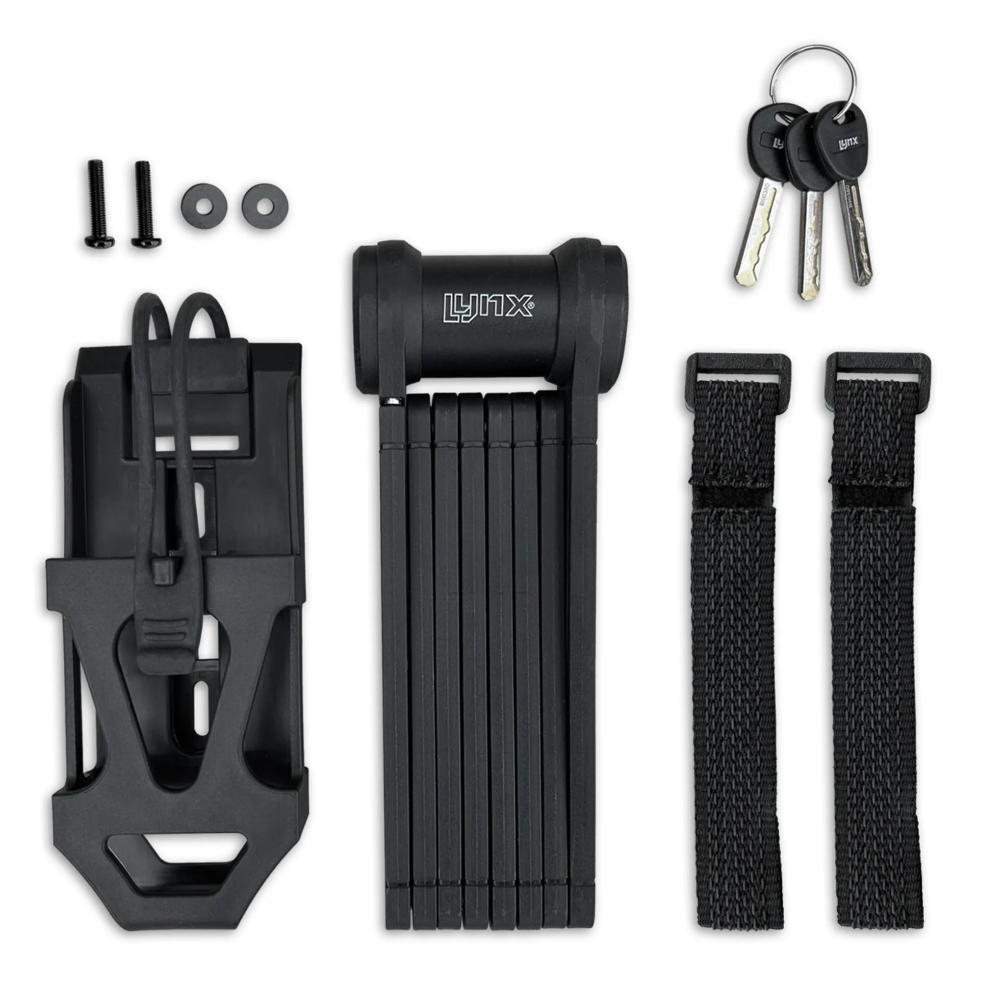 Veilig en veelzijdig, dat is het Lynx XL vouwslot met ART 2 goedkeuring. Dit extra lange XL vouwslot heeft een lengte van maar liefst 120 centimeter, waardoor fiets, e-bike of fatbike met optimale beveiliging en gemak vastgelegd kan worden aan brede objecten, zoals lantaarnpalen of fietsenrekken.