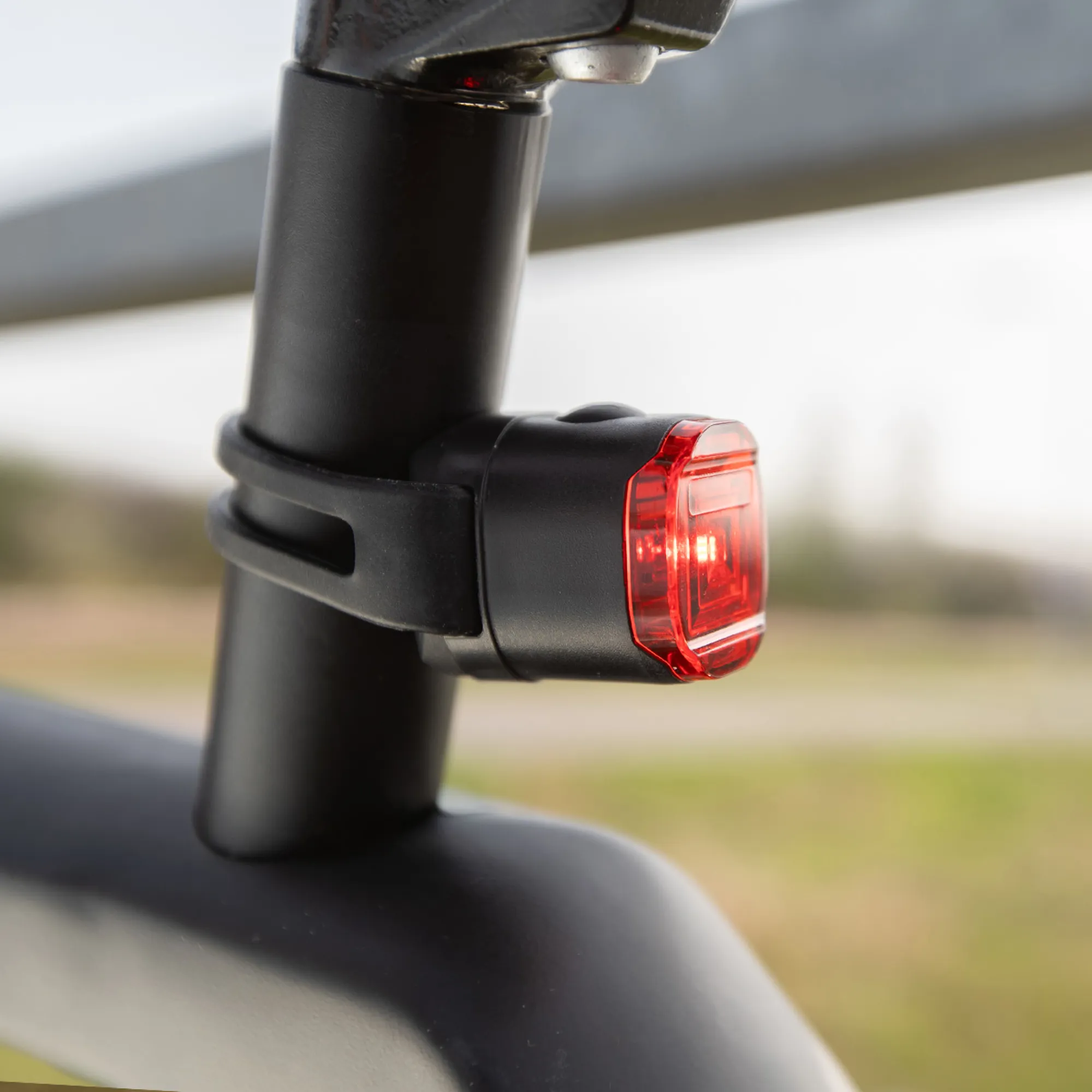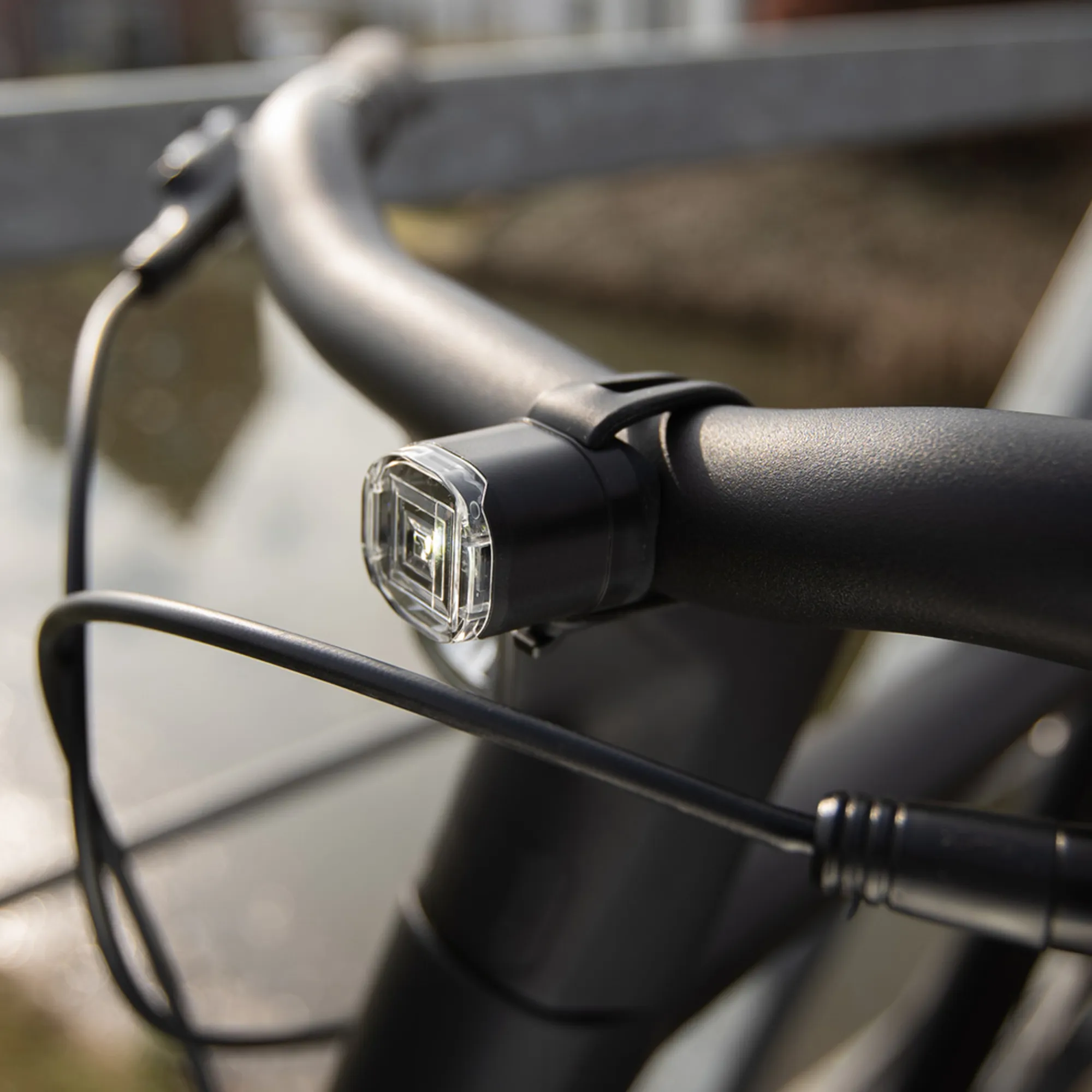 De Lynx USB Hero Duo verlichtingsset is een compacte, maar krachtige verlichtingsset, waarmee je goed zichtbaar bent in het verkeer. De Hero Duo is namelijk zo ontworpen, dat de fietser ook vanaf de zijkanten perfect zichtbaar is. Middels de rubberen bevestigingsband, trek je het voorlicht gemakkelijk om het stuur. Het achterlicht heeft dezelfde rubberen band én is aan de achterzijde schuin afgewerkt, zodat deze verticaal aan de zadelpen zit na montage. Deze USB oplaadbare verlichtingsset is voorzien van een lithium polymeer batterij (ook wel lipo accu), dit type batterij heeft een grotere capaciteit van de cellen en een laag gewicht, welke in slechts 3 uurtjes volledig is opgeladen. Wanneer de batterij van de Hero Duo bijna leeg is, zal dit aangegeven worden via de batterij indicator, waarna deze via het meegeleverde USB-C kabeltje opgeladen kan worden. Extra, De Lynx Hero Duo verlichtingsset heeft de Deense goedkeuring m.b.t. de regelgeving voor fietsverlichting. In display box.