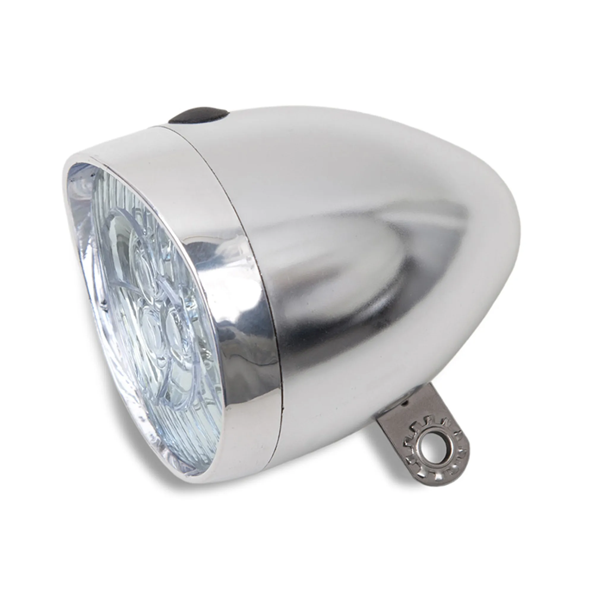 De oma-koplamp van Lynx: betrouwbare fietsverlichting met 3 heldere LED's, om optimaal te zien en gezien te worden op de fiets. Chrome versie. De koplamp werkt op standaard meegeleverde (3x) AAA batterijen. Lichtsterkte van 11 lux en verpakt in werkplaatsverpakking.