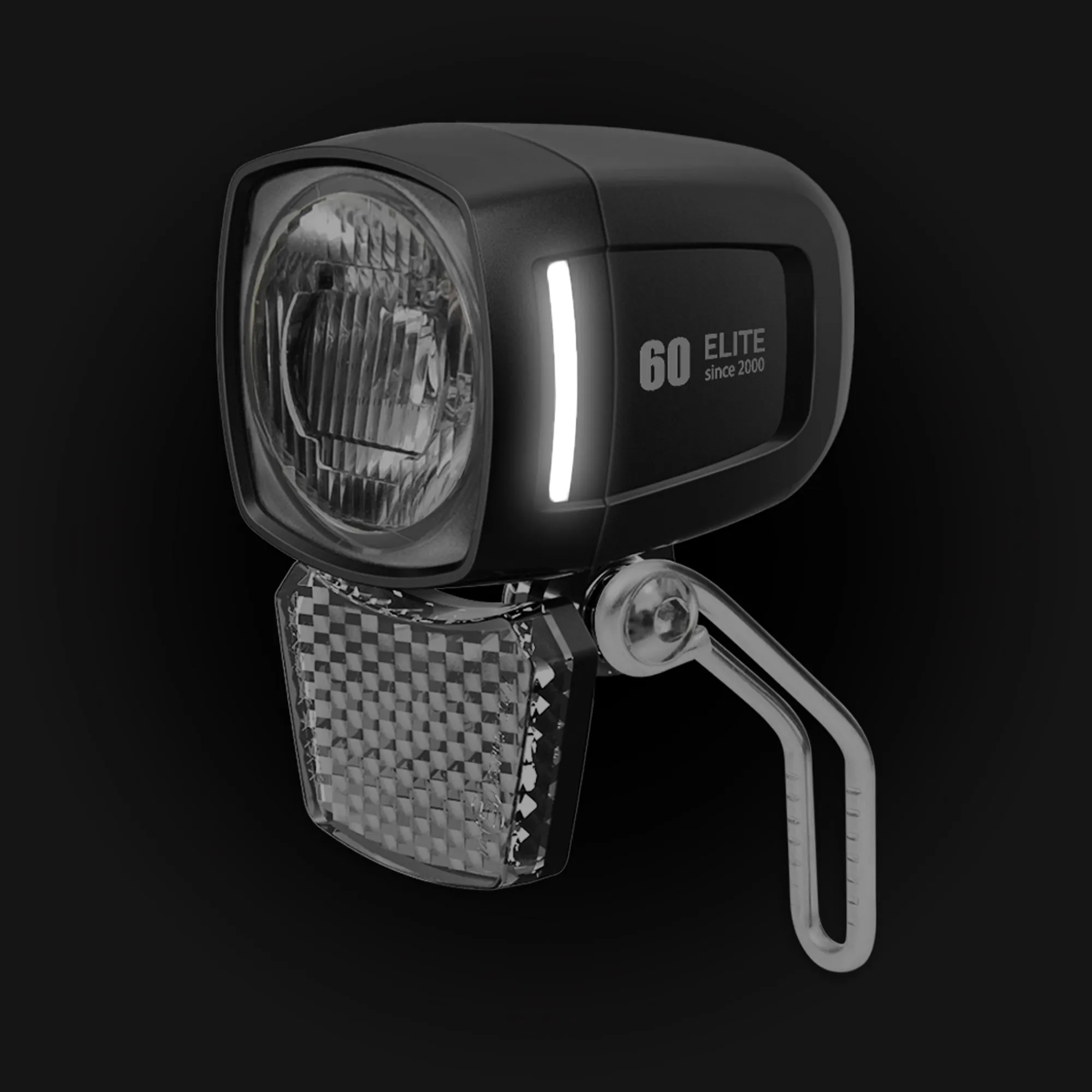 De Lynx Elite is een e-bike koplamp met een lichtsterkte van 60 lux, welke eenvoudig gemonteerd kan worden op alle standaard voorvorken. Dankzij het stijlvolle ontwerp, past dit voorlicht perfect bij de hedendaagse moderne fiets. De Lynx Elite staat garant voor een goede zichtbaarheid in het verkeer, de koplamp is namelijk voorzien van twee zijdelingse lichtuitgangen én heeft een geïntegreerde reflector. Het ontwerp van de optische lens in combinatie met de scherpe lijnafsnijding aan de rand van de lichtbundel, zorgt voor een gericht lichtveld dat andere weggebruikers niet verblindt. De koplamp E-bike Elite is StVZO-goedgekeurd en voldoet het hiermee aan de hoge Duitse normen welke gesteld worden aan fietsverlichting. Een lichtsterkte van 60 lux verlicht tot 80 meter en zorgt ervoor dat je tot 4000 meter zichtbaar bent voor tegemoetkomend verkeer. In werkplaatsverpakking.