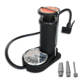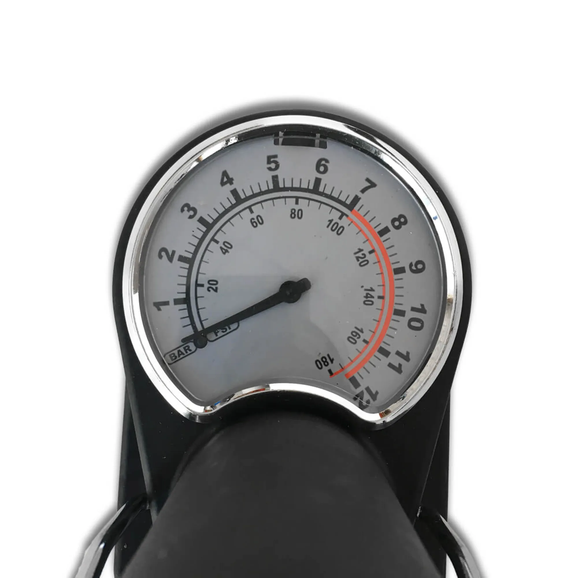 Deze kunststof mini voetpomp is voorzien van een manometer voor het nauwkeurig oppompen van de banden tot de gewenste druk. Met universele dubbele pomp voor Dunlop-, Presta-, en Schrader ventielen. Wordt geleverd in een handige opbergtas en adapterset. Slang 48 cm.