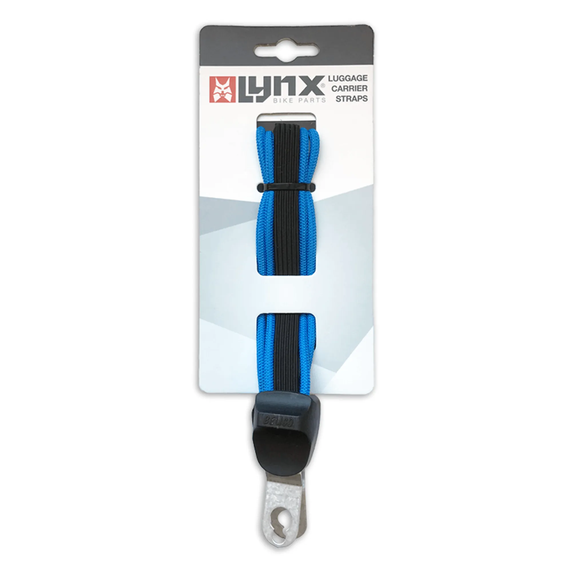 Zwart/blauwe snelbinder 26/28 Inch van het merk LYNX met aluminium zink legering plaatje. Deze snelbinders zijn handig voor transport op uw fiets en eenvoudig te monteren aan de bagagedrager. Deze snelbinders zijn verpakt op een nette hangkaart.