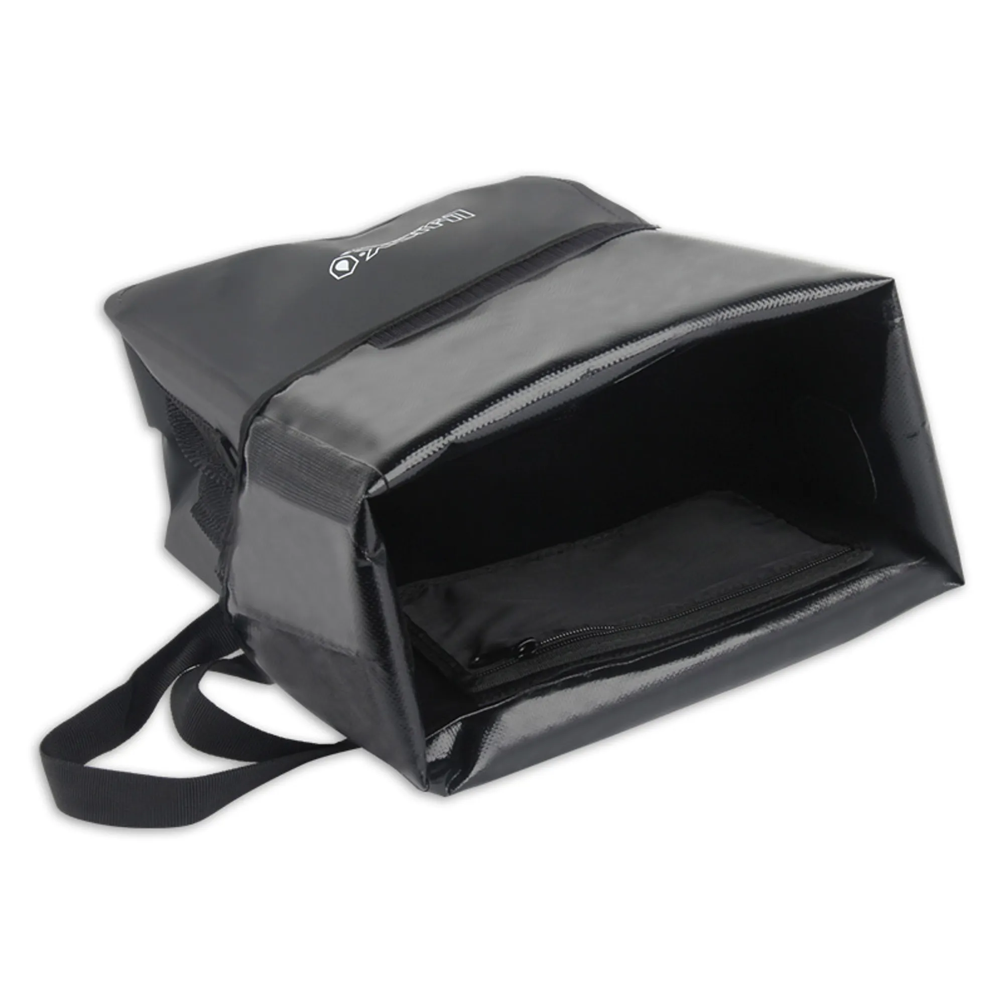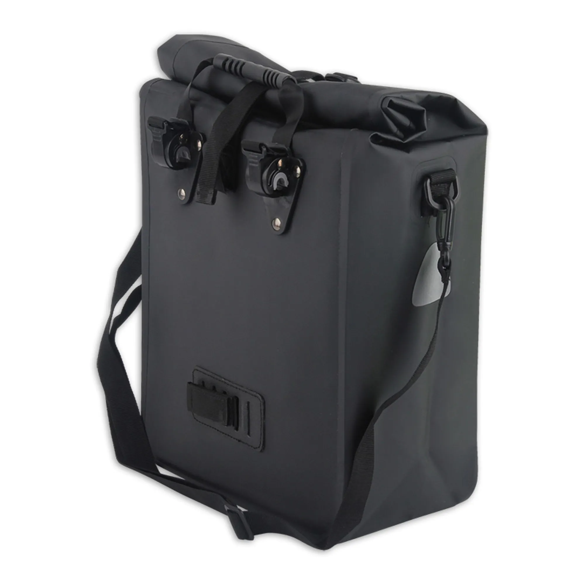 De zwarte enkele e-bike fietstas, genaamd Valley XL van het merk Lynx is wel héél compleet. In vergelijking met de normale Valley XL, is dit model namelijk ook geschikt voor e-bike fietsen, dankzij het quick-mount bevestigingssysteem. De tas kan aangebracht worden op een bagagedrager met een buis dikte van Ø 8 tot 15 mm. Verder heeft de Valley XL e-bike een handig ritsvakje aan de binnenzijde, welke middels klittenband boven in de tas te bevestigen is. Daar bovenkop komen nog de bekende Valley XL kenmerken, zoals 100% waterdichtheid, reflecterende elementen, 21 liter inhoud, elastisch zijvak en standaard meegeleverde schouderband. Met infokaart.