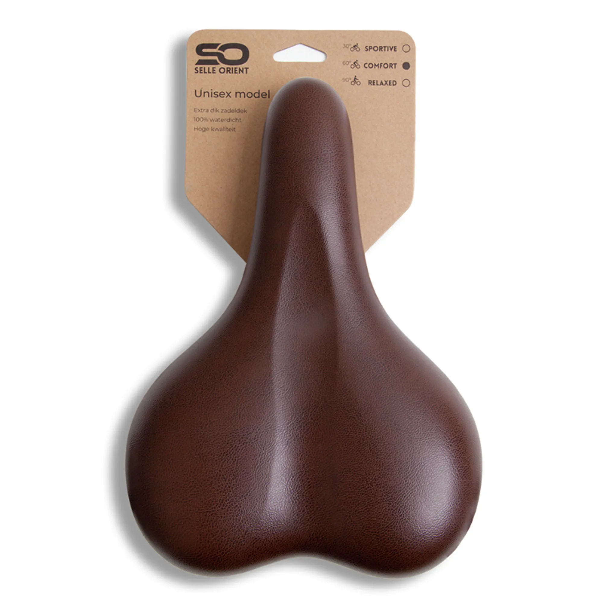 Het bruine City Sport zadel van Selle Orient is door zijn smallere vorm en comfort zitpositie, perfect voor de sportieve woon-werkverkeer fietser. De Hi-Density PU-schuimen vulling maakt het zadel premium comfortabel. Verder is het zadel hoogwaardig afgewerkt door de vacuüm productie, wat tevens het zadel waterdicht maakt. Op hangkaart.