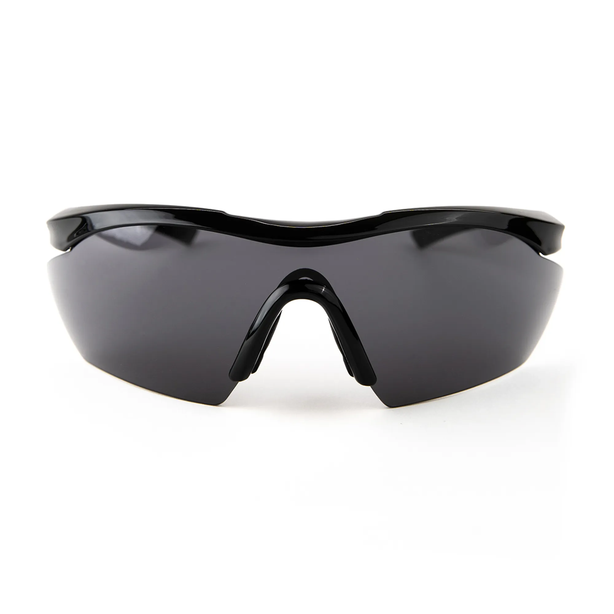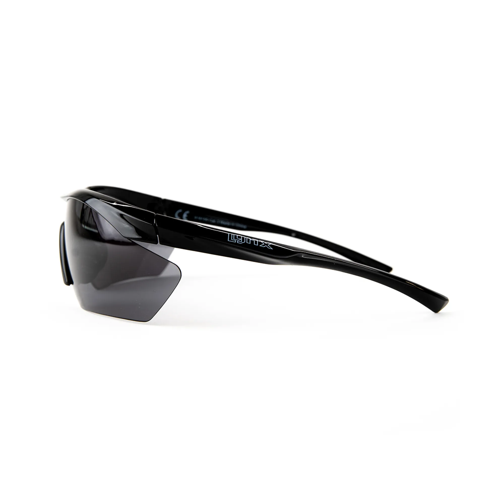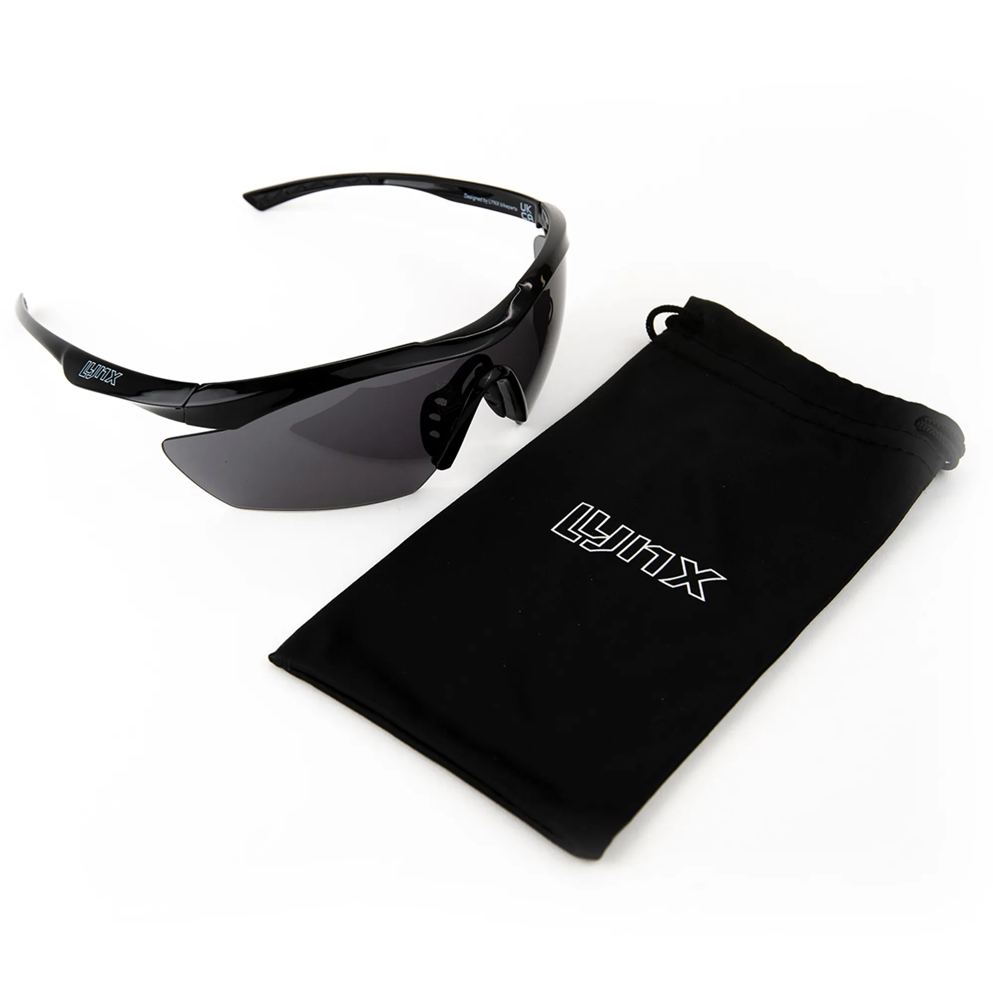 De zwarte Lynx Stelvio premium sportzonnebril is perfect voor iedere zonnige fietsrit. De standaard donkergrijze (Smoke) lenzen bieden de ogen 100% bescherming tegen Uv-straling en zijn voorzien van anti-fog, zodat ze niet zullen beslaan. De lenzen behoren tot categorie 3 qua lichtdoorlatendheid (9 – 18%), wat perfect is tijdens het fietsen op zomerse, zonnige dagen. Het frame van de bril is gemaakt van TR90 thermoplast materiaal, dit kunststof is zeer duurzaam, flexibel én licht van gewicht. Het zachte rubberen neusstuk vormt zich gemakkelijk naar de neus voor maximaal comfort en grip. Aan de binnenzijde van de brillenpootjes zijn anti-slip vlakken aangebracht om de bril perfect op zijn plek blijft zitten. De fietsbril wordt geleverd in een zachte nylon opbergzakje, voorzien van sluitkoord.