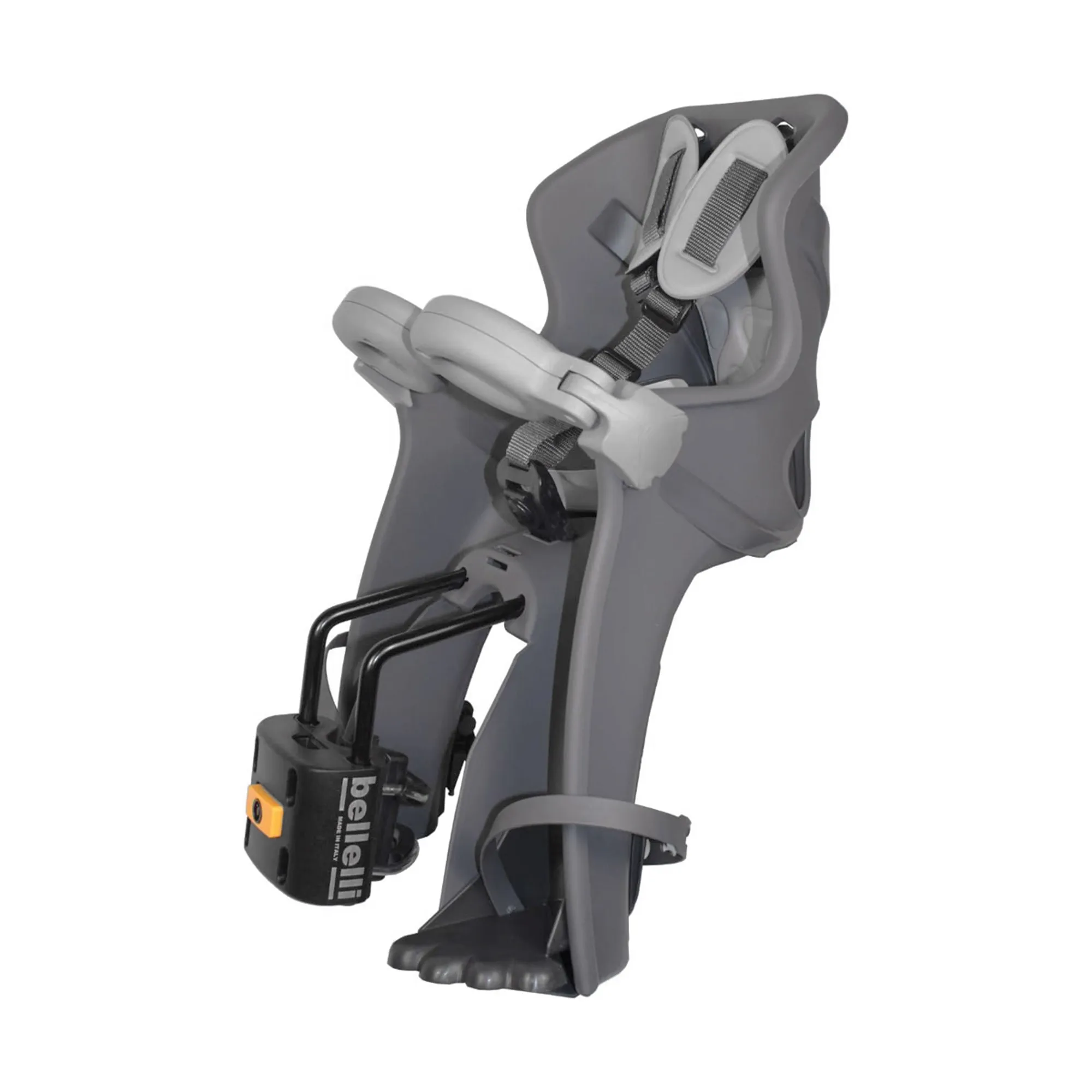 Dit Bellelli voorzitje, model Freccia, is een hoogwaardig afgewerkt fietsstoeltje welke veel comfort en veiligheid biedt. Deze 'Luxe' uitvoering is voorzien van zachte eco-lederen bekleding en driepuntsgordel met schouderkussentjes. Voor extra ondersteuning en veiligheid heeft het kinderzitje hoge zijwanden, om zo te voorkomen dat bijv. benen of voeten in de buurt kunnen komen van de spaken. Verder zijn er aan de achterzijde van dit voorzitje ventilatieopeningen aangebracht en heeft het een praktisch handgreep aan de voorzijde ter bescherming. De voetsteuntjes zijn te verstellen in 11 verschillende posities, waarna je vervolgens het voetje vastzet met de verstelbare riempjes.